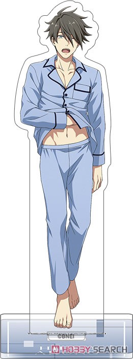 1boy ahoge akuno_hideo barefoot breast_pocket feet full_body hand_under_clothes hand_under_shirt idolmaster idolmaster_side-m male_focus navel official_art open_mouth pajamas pants pocket shirt toenails toes