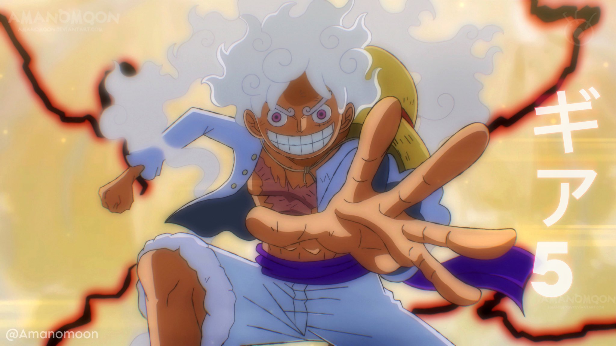 alternate_form amanomoon black_hair facial_scar gear_fifth highres jacket monkey_d._luffy one_piece open_clothes open_jacket open_mouth sandals scar scar_on_cheek scar_on_face shirt spoilers steam