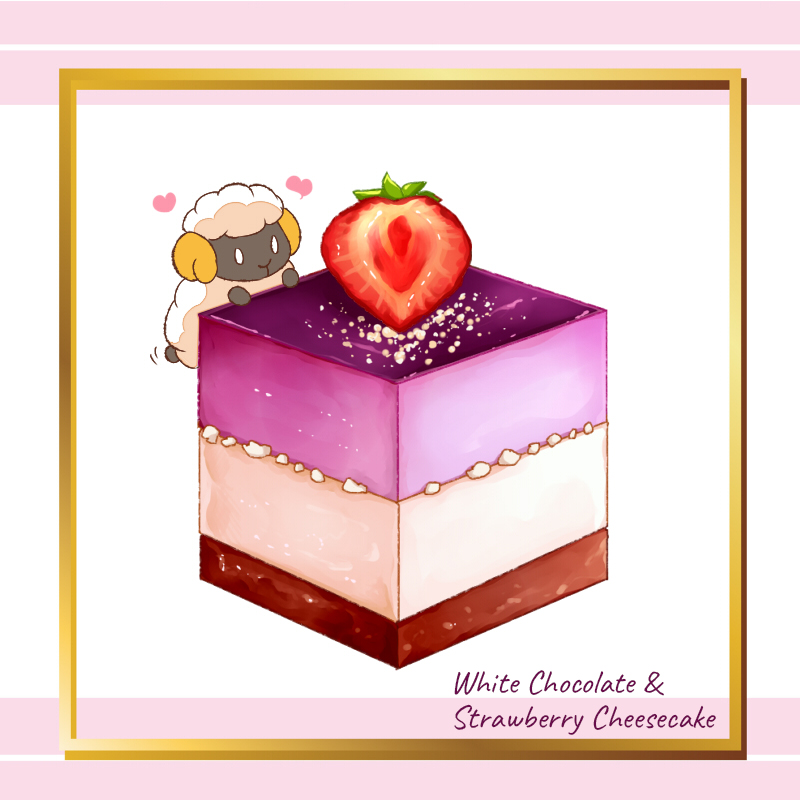 0_0 animal border cheesecake chibi chibi_inset cross-section dessert english_text food food_focus food_name heart no_humans original sheep_(yuki00yo) simple_background white_background white_eyes yellow_border yuki00yo