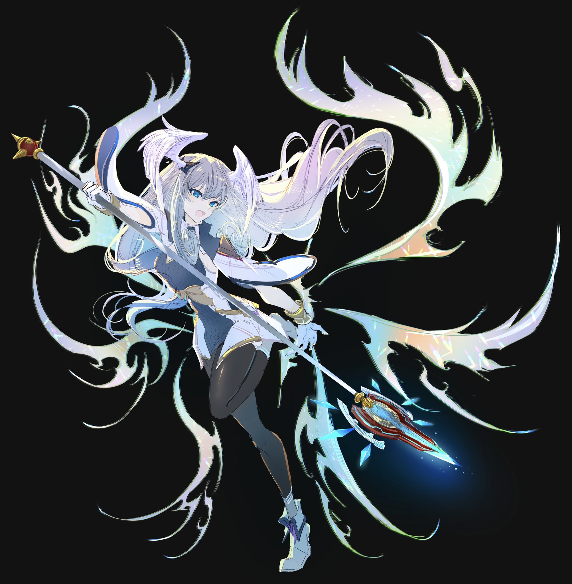 black_background blue_eyes head_wings highres hyouri00 long_hair melia_antiqua simple_background solo wings xenoblade_chronicles_(series) xenoblade_chronicles_1 xenoblade_chronicles_3