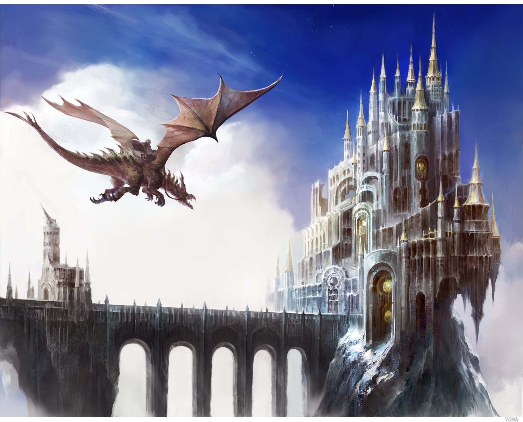 1other ambiguous_gender arch arch_bridge architecture arizdigitalart blue_sky bridge city cityscape cloud commentary day dragon riding_dragon english_commentary fantasy final_fantasy final_fantasy_xiv flying from_side gate highres in-universe_location letterboxed outdoors pillar reins scenery sky solo spire tower very_wide_shot