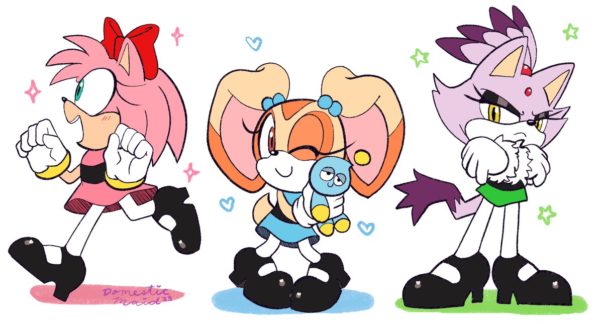 3girls amy_rose animal_ears black_footwear blaze_the_cat blossom_(ppg) blossom_(ppg)_(cosplay) blue_dress brown_eyes bubbles_(ppg) bubbles_(ppg)_(cosplay) buttercup_(ppg) buttercup_(ppg)_(cosplay) cartoon_network cat_girl cat_tail cheese_(sonic) cosplay cream_the_rabbit crossed_arms domestic_maid dress eyelashes forehead_jewel frown furry furry_female gloves green_dress green_eyes multiple_girls one_eye_closed open_mouth pink_dress pink_fur ponytail powerpuff_girls powerpuff_girls_(2016) purple_fur rabbit_ears rabbit_girl rabbit_tail red_ribbon ribbon sega smile sonic_(series) tail warner_bros. yellow_eyes