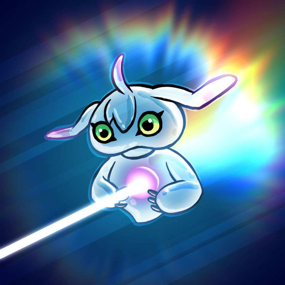 1other digimon digimon_(creature) glowing green_eyes other_focus solo ukkomon