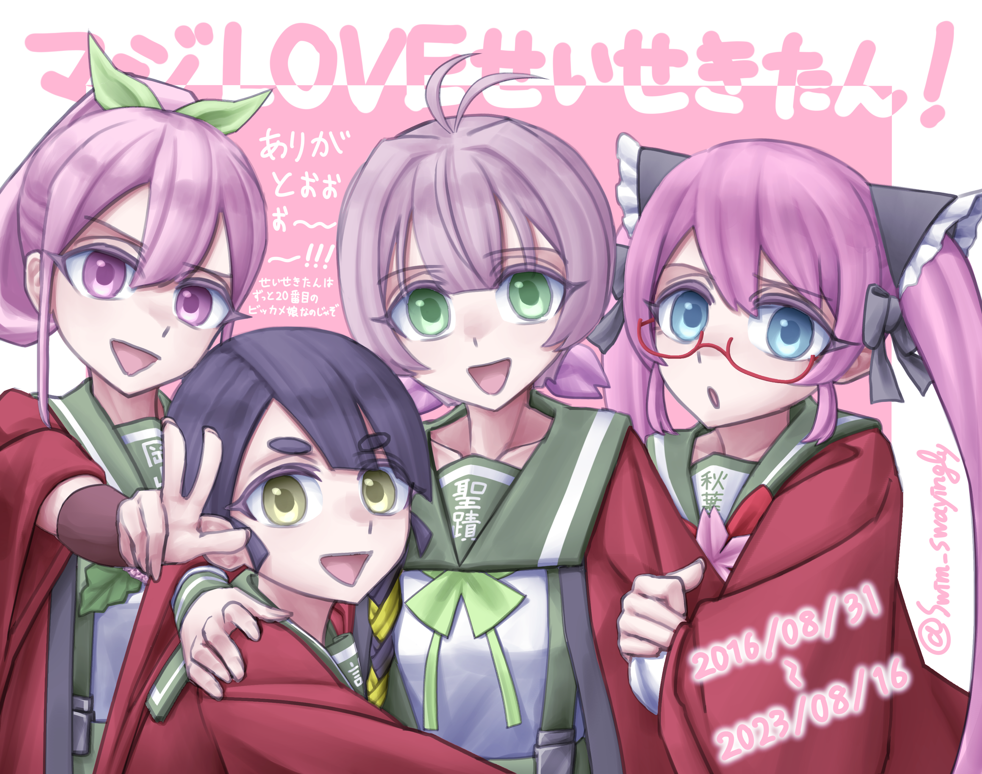 4girls absurdres akiba-tan choufu-tan highres multiple_girls okayama-tan pink_hair sailor_collar seiseki-tan twintails