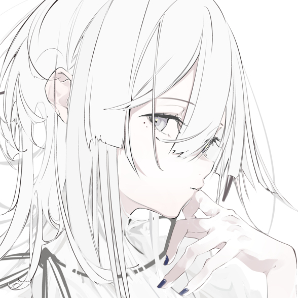 1girl expressionless grey_eyes original solo white_background white_hair yonemuro