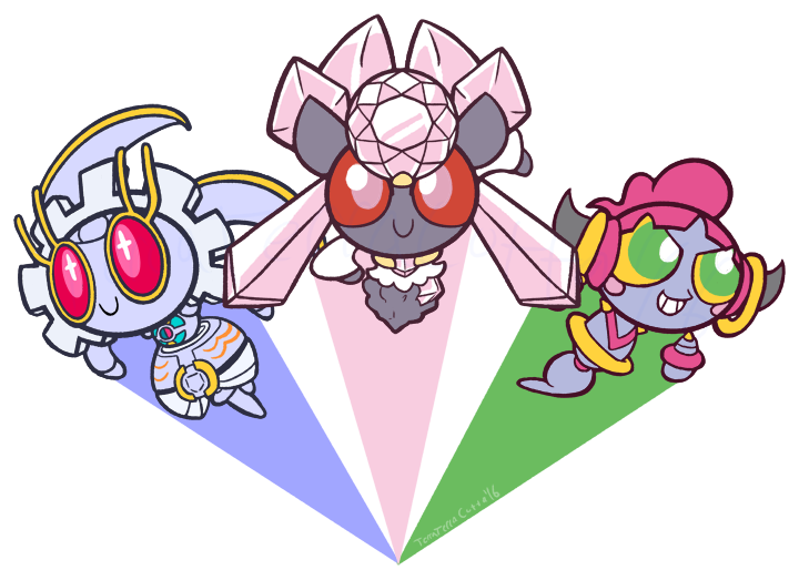 :> artist_request colored_sclera diancie flying full_body gen_6_pokemon gen_7_pokemon green_eyes grin hoopa hoopa_(confined) horns jewelry legendary_pokemon looking_at_viewer looking_to_the_side magearna magearna_(normal) mythical_pokemon nintendo no_humans parody pokemon pokemon_(creature) powerpuff_girls red_eyes ring simple_background smile style_parody transparent_background what yellow_sclera