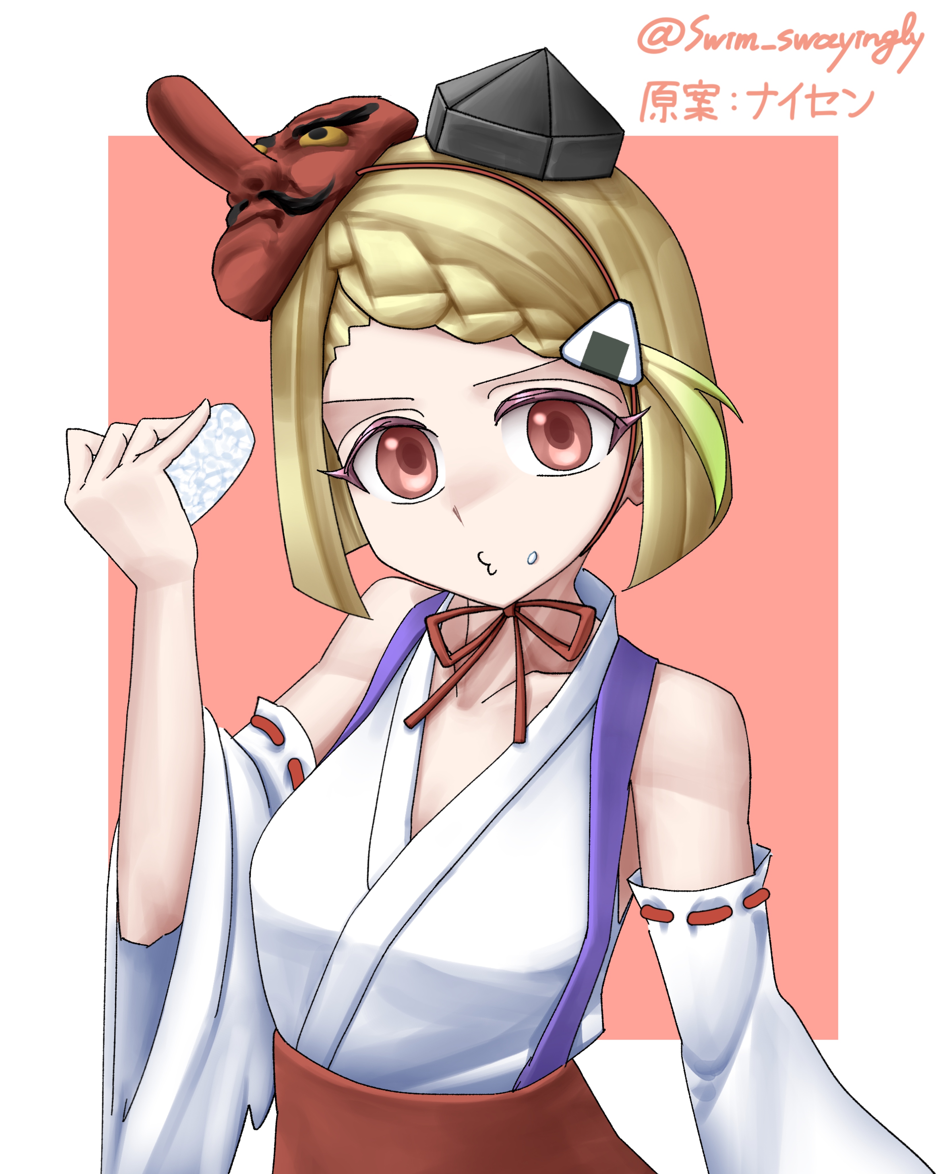 1girl absurdres halloween_costume highres japanese_clothes mask niigata-tan onigiri tengu_mask