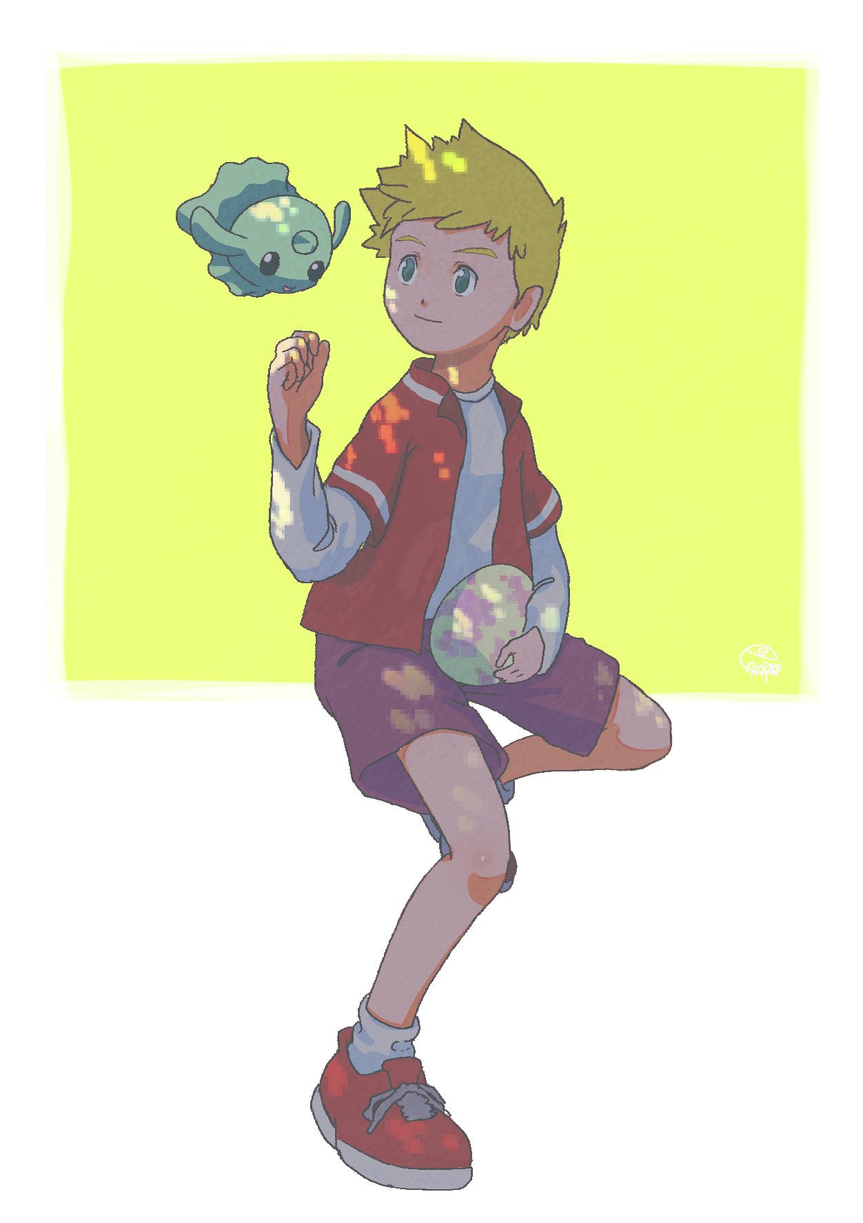 1boy 1other blonde_hair digimon digimon_(creature) digitama egg floating highres looking_at_another wallace_(digimon) zerimon