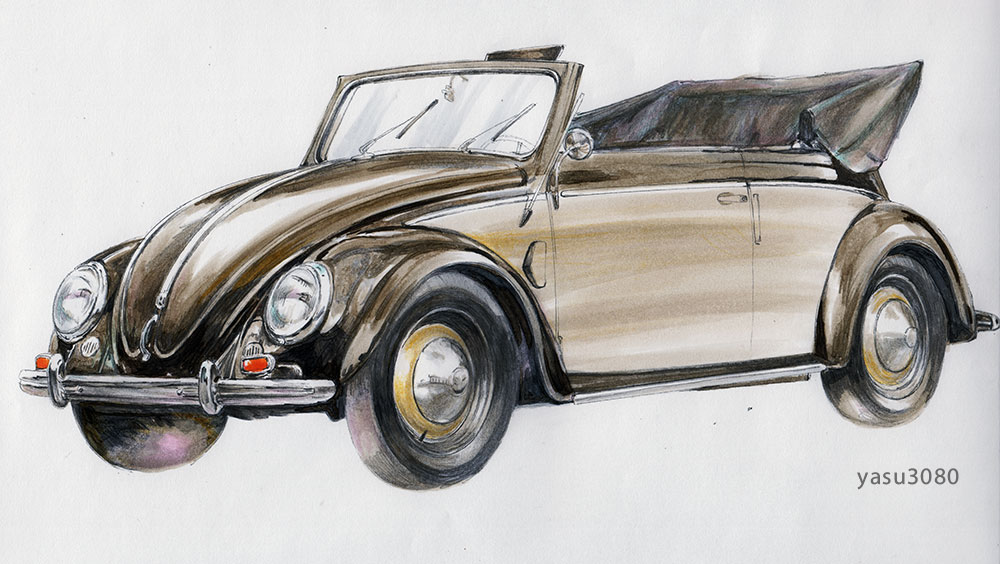 artist_name brown_car car colored_pencil_(medium) convertible motor_vehicle no_humans original simple_background traditional_media twitter_username volkswagen volkswagen_beetle white_background yasuyuki3080