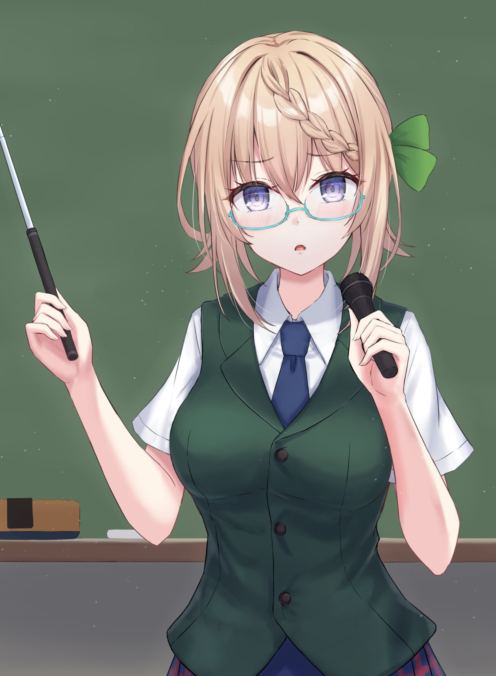 &{ID:8962218 CreatedAt:Sun Sep 03 07:15:33 -0500 2023 Score:2 Width:1630 Height:2219 MD5:03b2b69b1945f0f7dcd7a619fe6f147c Directory:03/b2 Image:03b2b69b1945f0f7dcd7a619fe6f147c.png Rating:general Source:https://www.pixiv.net/artworks/111417158 Change:1719780482 Owner:danbooru CreatorID:6498 ParentID:0 Sample:1 PreviewHeight:350 PreviewWidth:257 Tags:1girl bespectacled blonde_hair blue-framed_eyewear blue_necktie blue_skirt braid braided_bangs breasts chalkboard collared_shirt glasses green_vest hair_bun highres holding holding_microphone holding_pointer kantai_collection large_breasts looking_at_viewer microphone monoku necktie perth_(kancolle) plaid_clothes plaid_skirt pointer purple_eyes school_uniform semi-rimless_eyewear shirt short_hair short_sleeves skirt solo under-rim_eyewear vest white_shirt Title: HasNotes:false HasComments:false FileURL:https://img2.gelbooru.com/images/03/b2/03b2b69b1945f0f7dcd7a619fe6f147c.png PreviewURL:https://gelbooru.com/thumbnails/03/b2/thumbnail_03b2b69b1945f0f7dcd7a619fe6f147c.jpg SampleURL:https://img2.gelbooru.com/samples/03/b2/sample_03b2b69b1945f0f7dcd7a619fe6f147c.jpg SampleHeight:1157 SampleWidth:850 Status:active PostLocked:0 HasChildren:false IsVideo:false DisplayDate:03.09.2023 07:15}