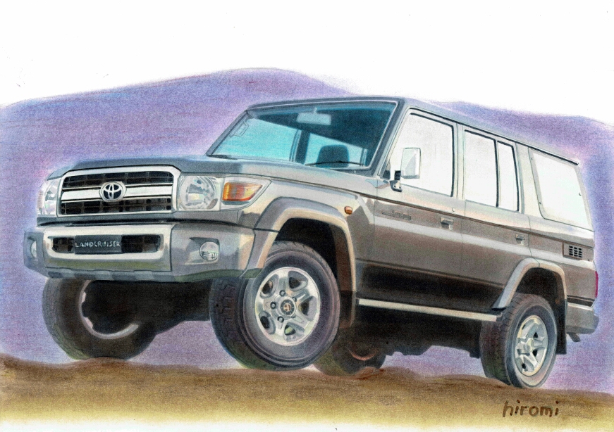 artist_name car commentary_request exhaust_pipe faux_traditional_media grey_car hiromi_(yabai_car_sketch1534) marker_(medium) motor_vehicle no_humans original pixiv_username simple_background sports_utility_vehicle toyota toyota_land_cruiser traditional_media vehicle_focus white_background