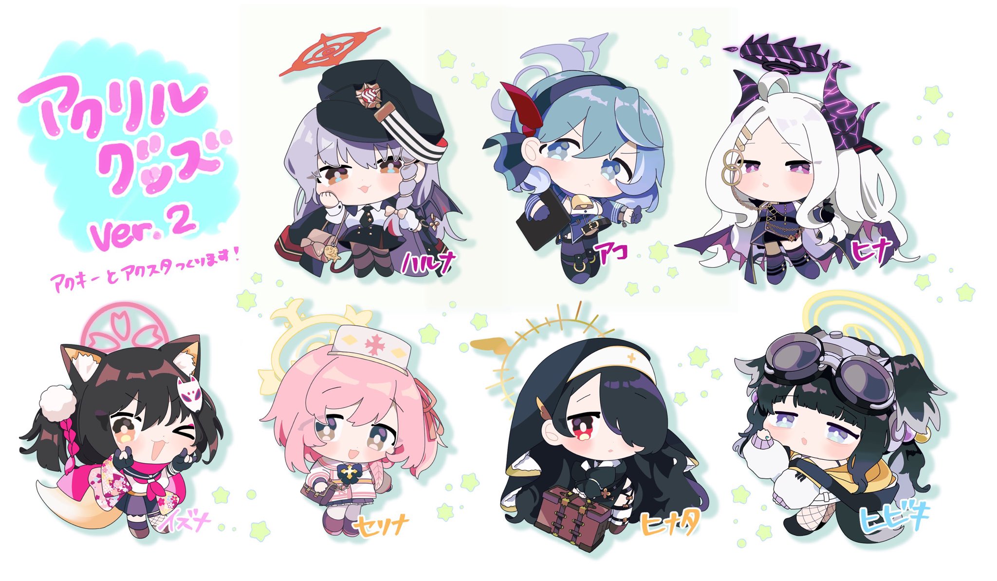 >_o 6+girls ako_(blue_archive) animal_ears bell black_gloves black_hair black_headwear black_skirt blue_archive blue_eyes blue_hair blush braid character_name chibi collared_shirt dog_ears dog_girl dog_tail fox_ears fox_girl fox_tail gloves goggles goggles_on_head grey_hair habit hair_ornament hair_over_one_eye halo haruna_(blue_archive) hat hibiki_(blue_archive) highres hina_(blue_archive) hinata_(blue_archive) holding horns izuna_(blue_archive) jacket long_hair long_sleeves multiple_girls neck_bell nun nun_headdress nurse_cap one_eye_closed open_mouth pantyhose parted_lips pink_hair pink_scarf pom_pom_(clothes) pom_pom_hair_ornament sailor_collar scarf school_uniform serafuku serina_(blue_archive) shirt side_braid skirt tail tanikomotimoti very_long_hair white_hair white_shirt wings