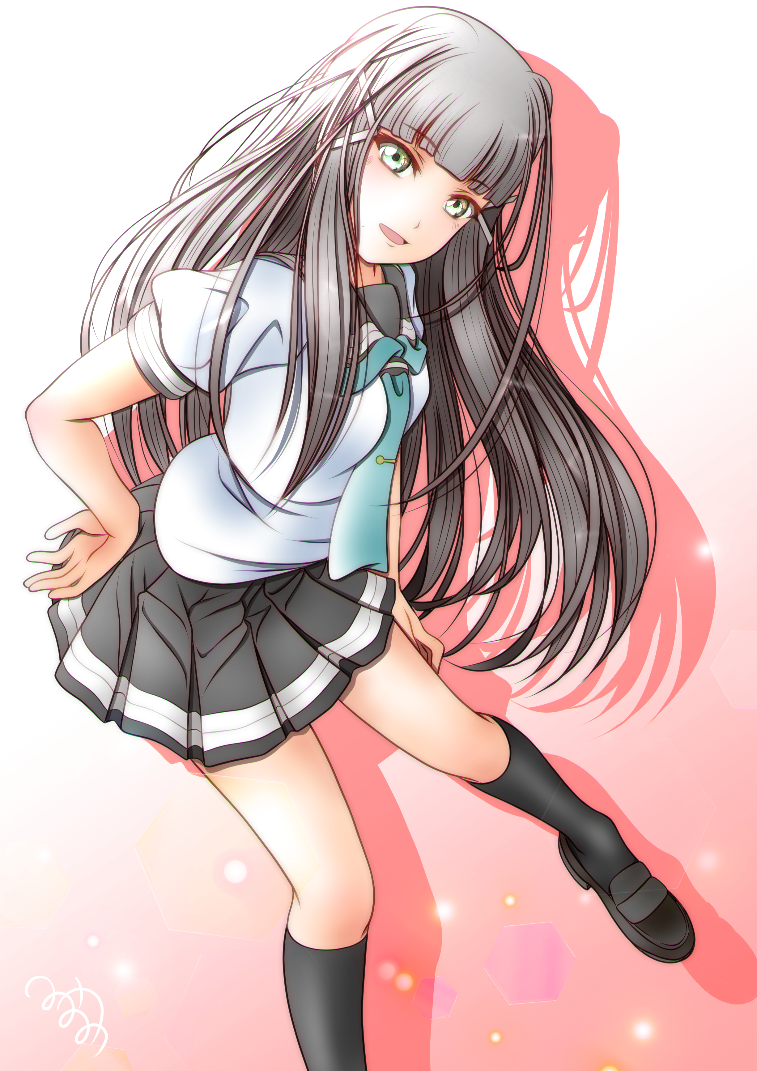 1girl absurdres aqua_eyes brown_hair highres kurosawa_dia long_hair looking_at_viewer love_live! love_live!_sunshine!! minami_saan short_sleeves smile solo uranohoshi_school_uniform