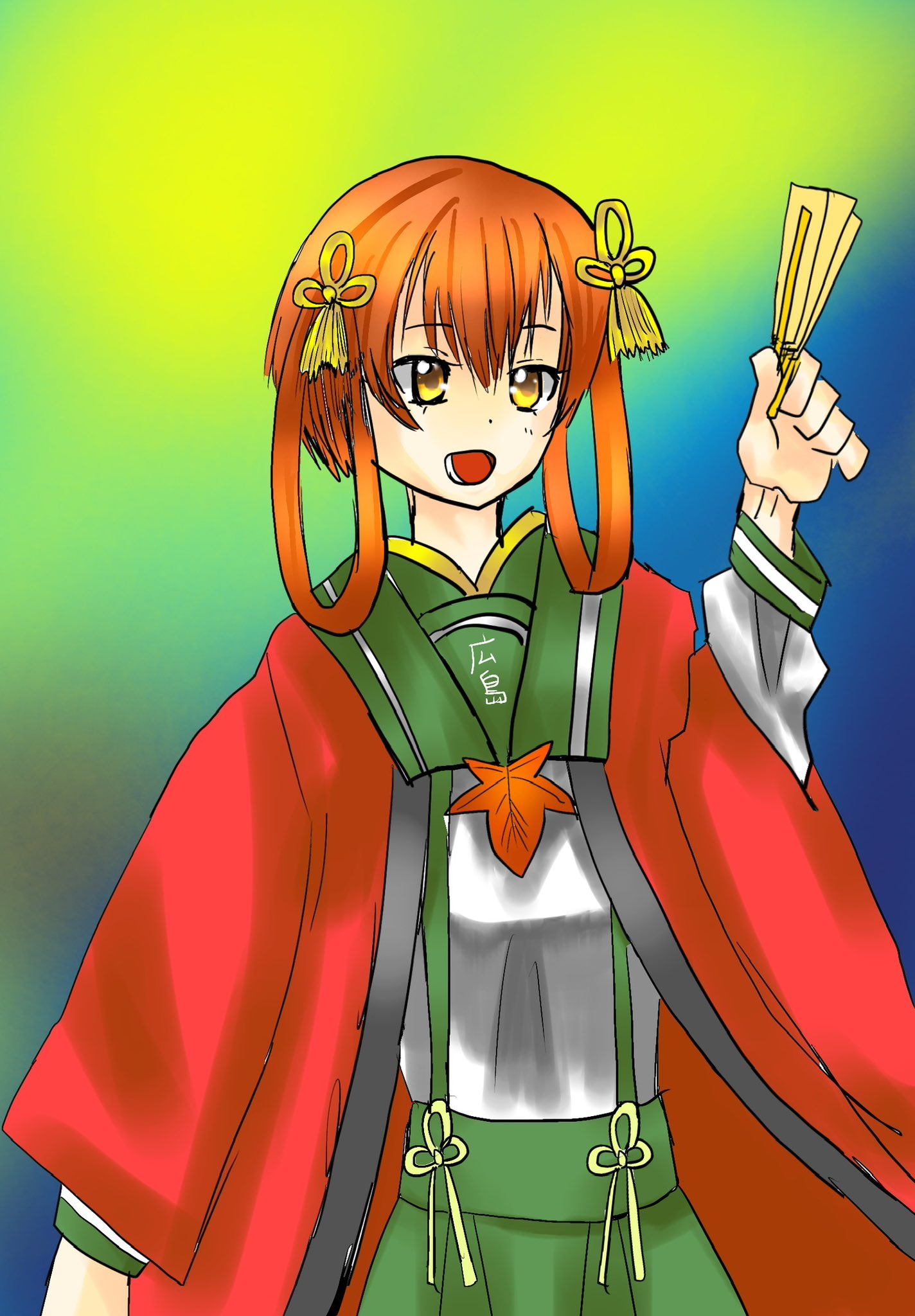 1girl brown_hair green_skirt happi highres hiroshima-tan japanese_clothes open_mouth sailor_collar skirt