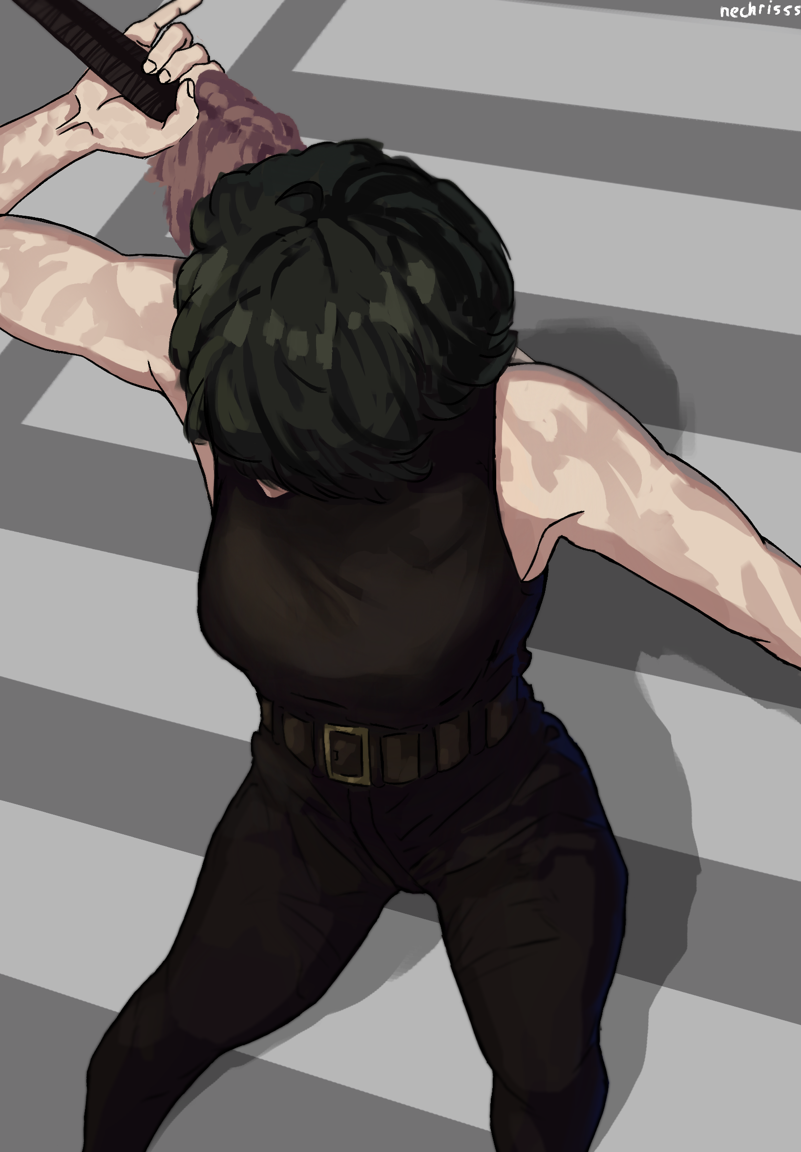 1girl green_hair highres jujutsu_kaisen jujutsu_tech_uniform nechrisss pants short_hair solo solo_focus zen'in_maki
