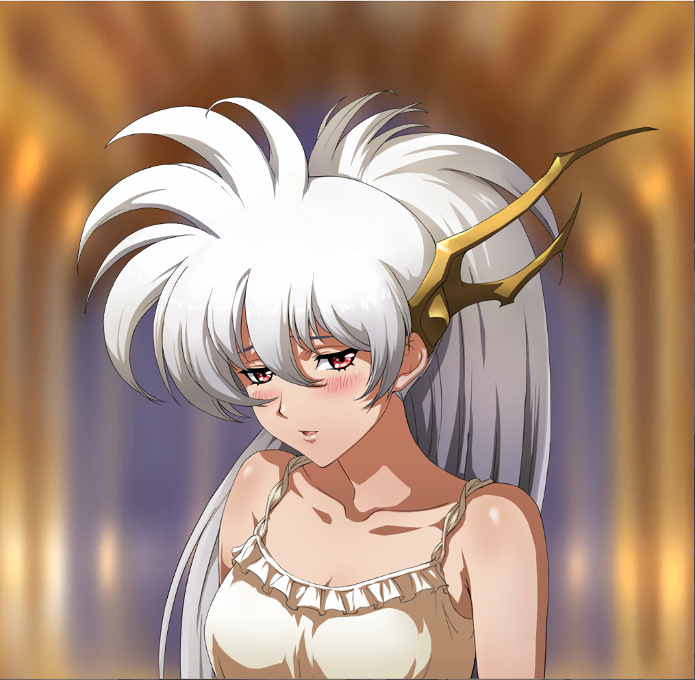 1girl blush confession dress langrisser langrisser_mobile looking_at_viewer luna_(langrisser) official_art red_eyes white_hair