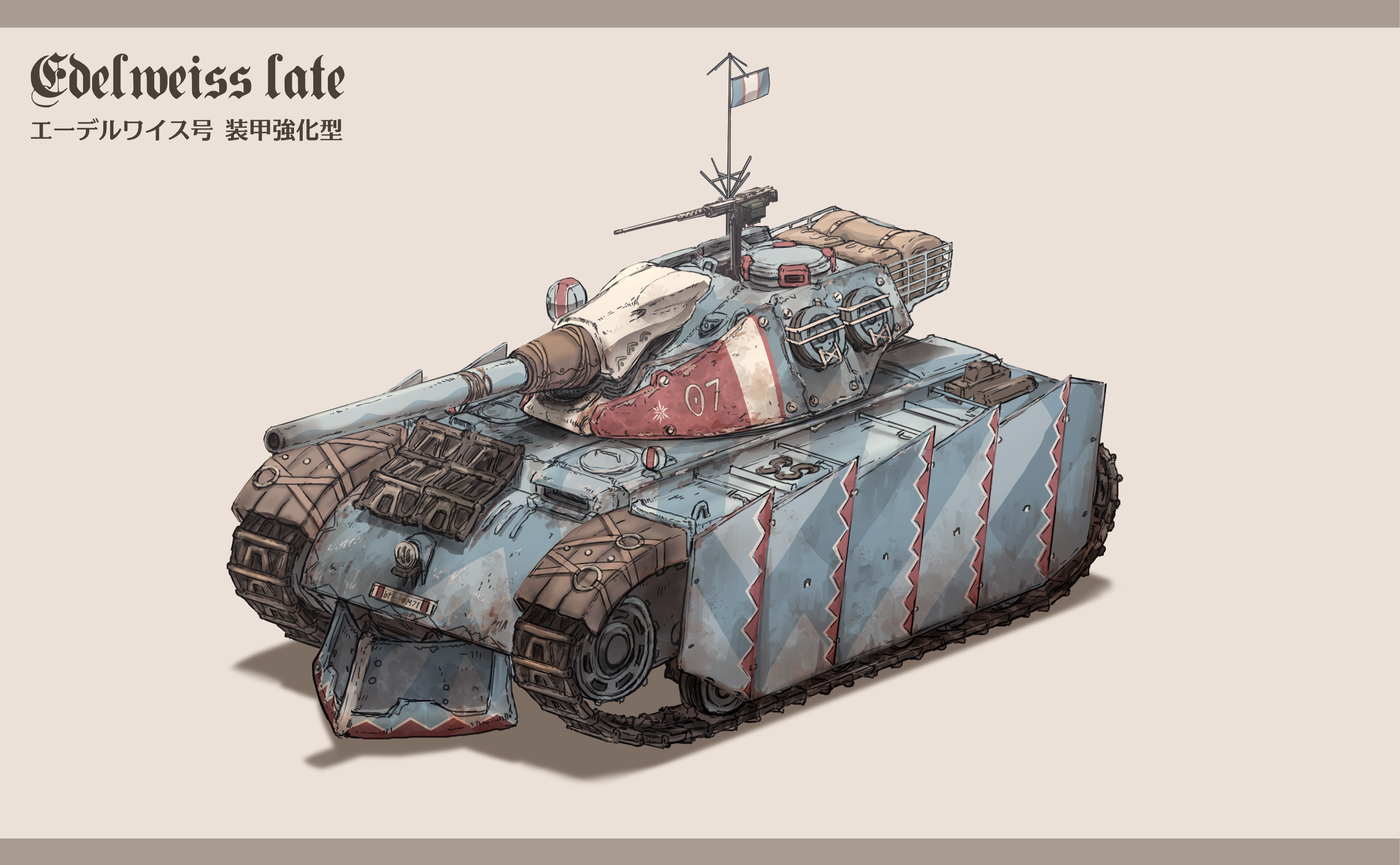 absurdres aoi_waffle browning_m2 caterpillar_tracks edelweiss_(senjou_no_valkyria) gun heavy_machine_gun highres machine_gun military military_vehicle motor_vehicle senjou_no_valkyria senjou_no_valkyria_(series) senjou_no_valkyria_1 tank turret vehicle_focus weapon