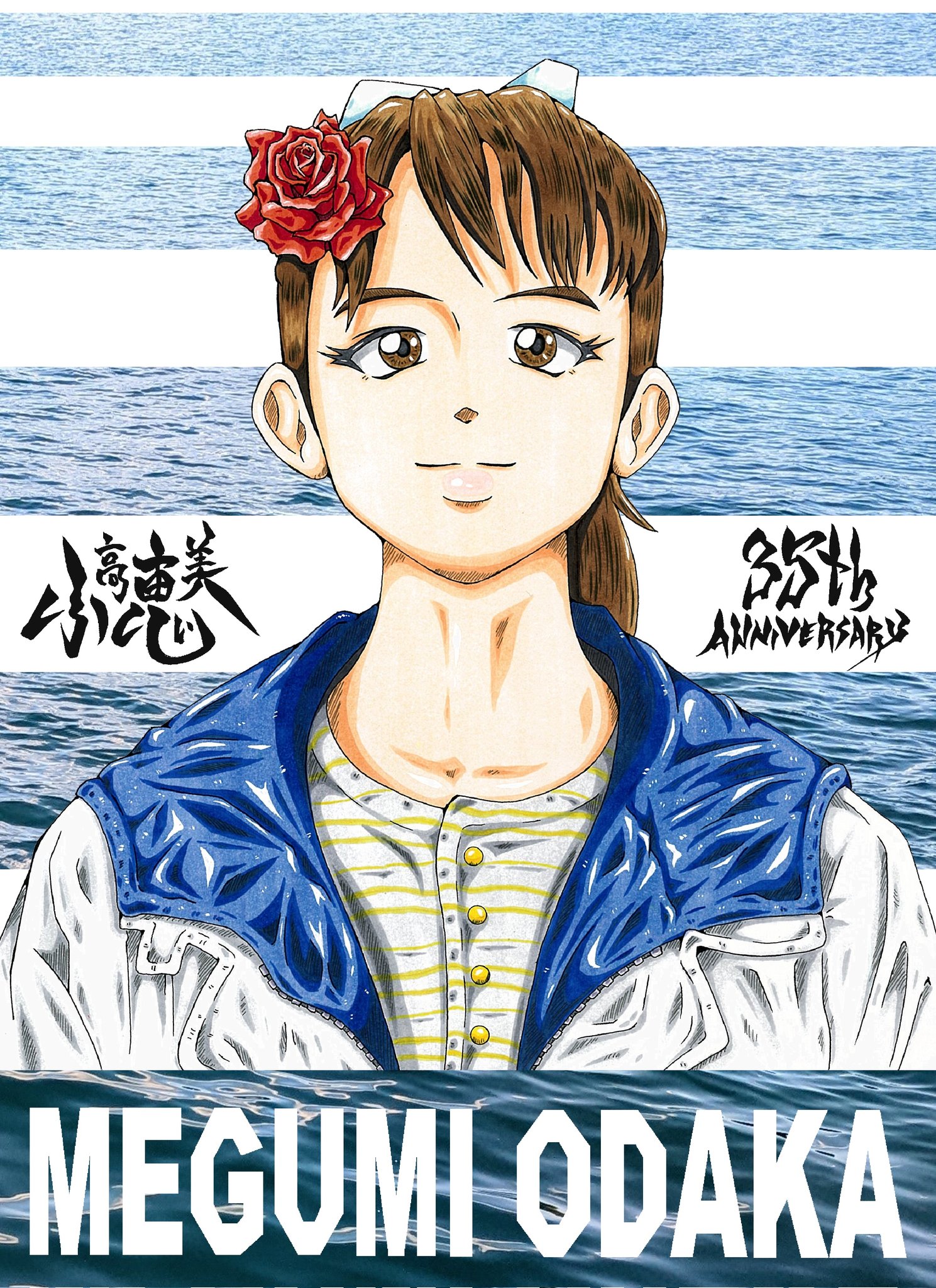 brown_eyes english_text flower flower_on_head godzilla_(series) godzilla_vs._biollante hair_between_eyes hair_ribbon hasitaku0134 highres jacket japanese_text looking_up ocean odaka_megumi ponytail real_life ribbon rose saegusa_miki_(godzilla) shirt smile toho water
