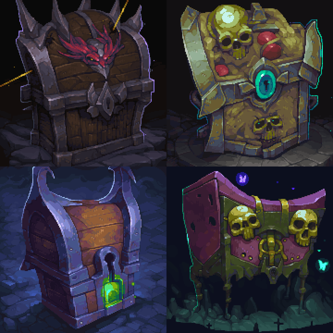 animated animated_gif blinking blue_butterfly bug butterfly gem glowing glowing_eyes green_eyes insect keyhole mimic mimic_chest original pixel_art pixeldoshi skull trapped treasure_chest