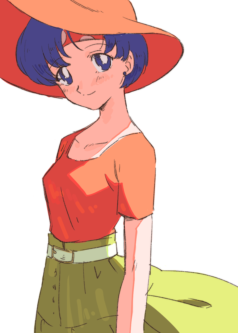 1girl ako_(hoshiya_830) bishoujo_senshi_sailor_moon blue_eyes blue_hair breasts earrings green_skirt hat highres jewelry light looking_at_viewer mizuno_ami orange_hat shadow short_hair skirt small_breasts smile solo