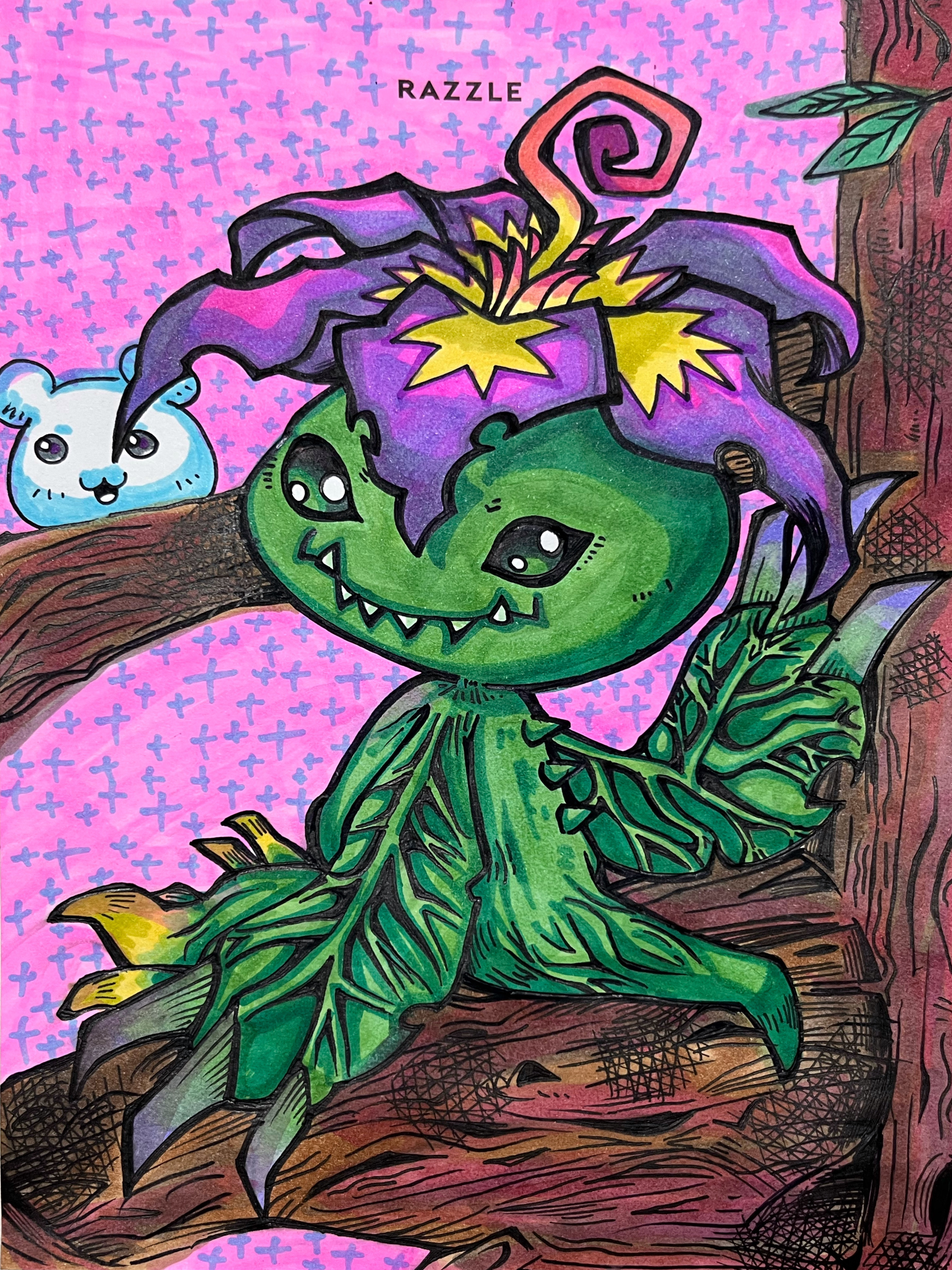 absurdres alraumon digimon digimon_(creature) flower highres monster_girl petals plant_girl sharp_teeth teeth yukimibotamon