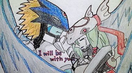 armor beelzebumon_(digimon_xros_wars) braid breasts couple digimon digimon_(creature) helmet long_hair mervamon sad