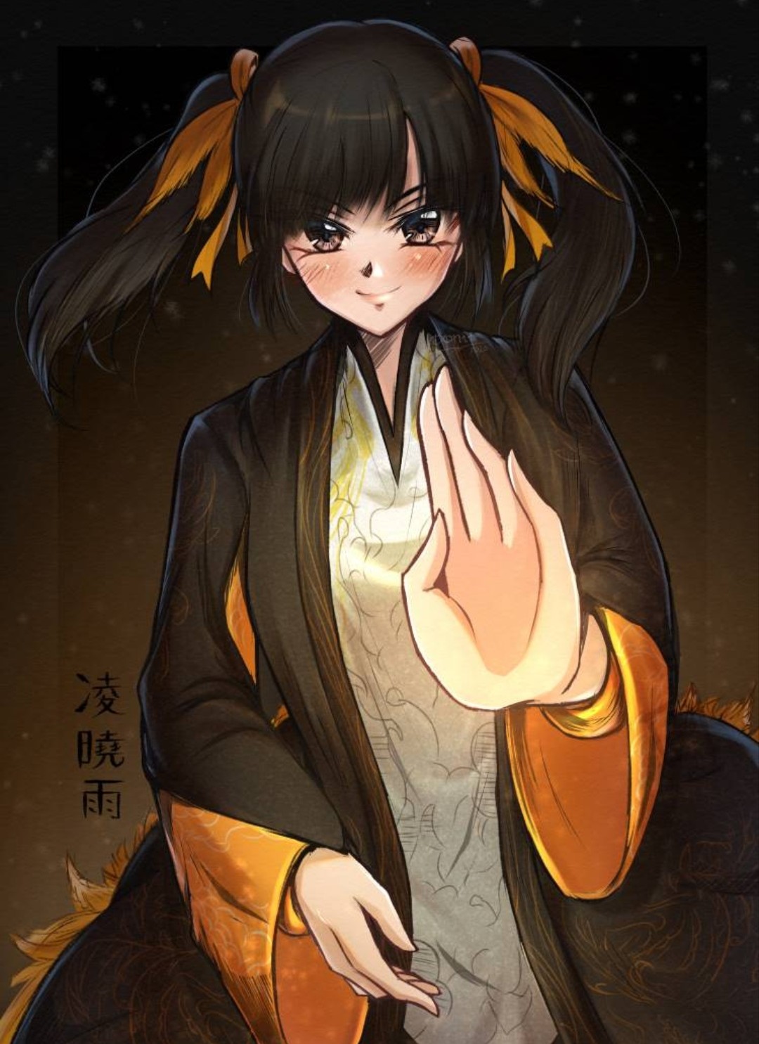 1girl black_hair blue_eyes blush highres ling_xiaoyu long_hair long_sleeves ponii tekken tekken_8 twintails wide_sleeves