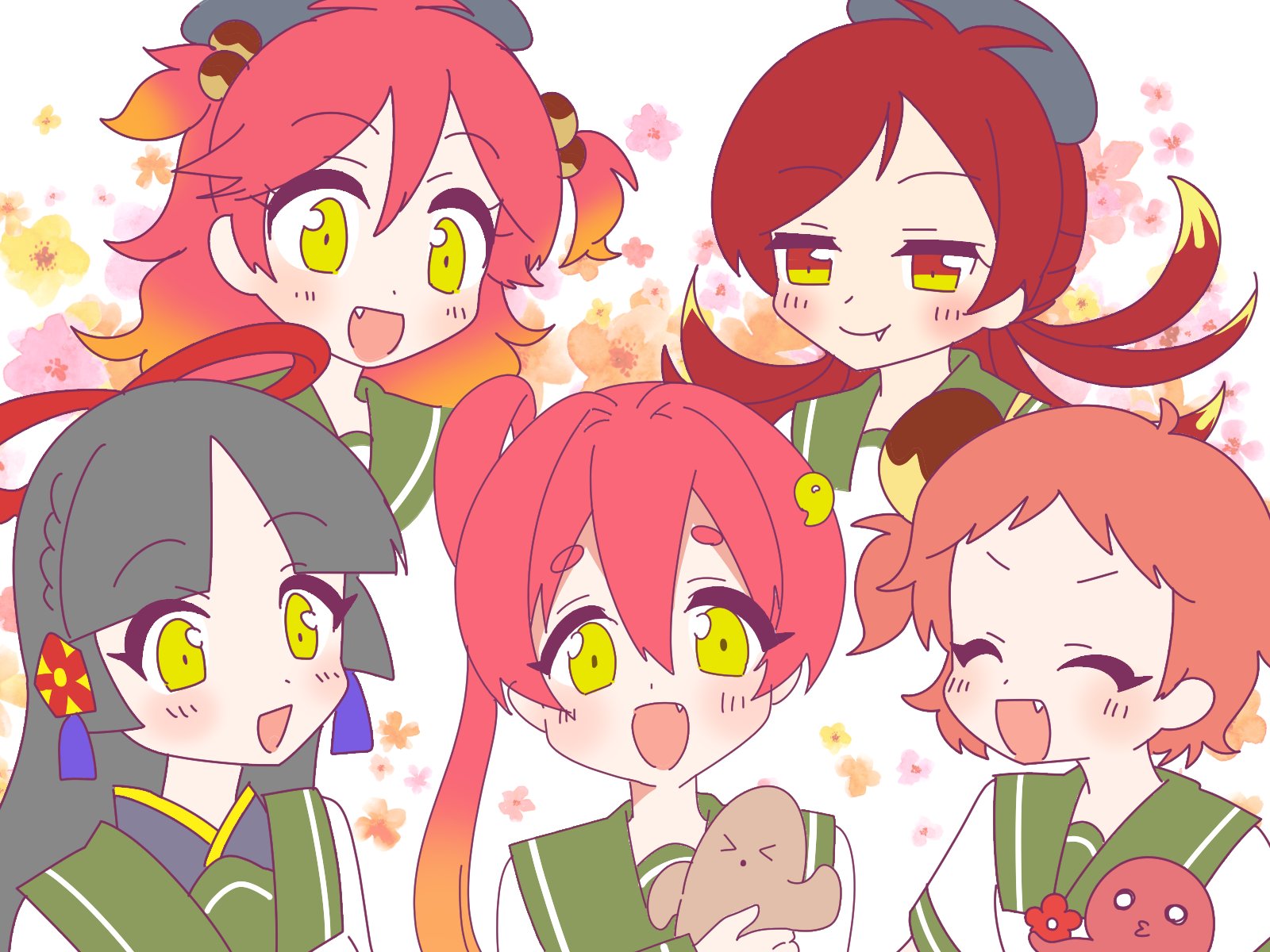 5girls abeno-tan black_hair highres kyoto-tan multiple_girls naisen nanba-tan sailor_collar takatsuki-tan yao-tan