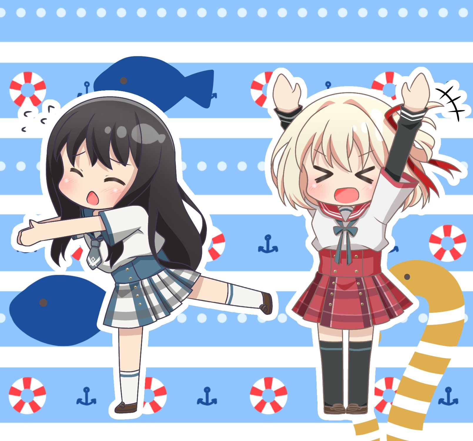 >_< 2girls black_hair blonde_hair dress hair_ribbon highres inoue_takina long_hair looking_at_viewer lycoris_recoil mamekokko meme multiple_girls nishikigi_chisato red_dress red_eyes red_ribbon ribbon sakana~_(meme) short_hair smile