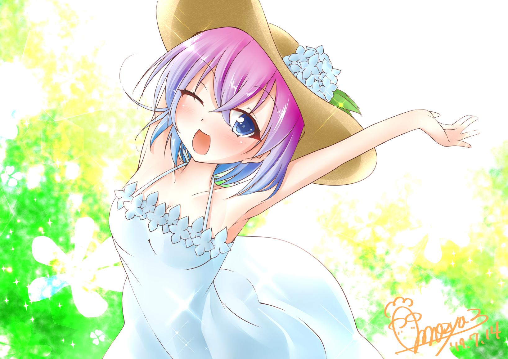 1girl artist_name breasts dress flower highres hydrangea medium_breasts mozya sagami-tan white_dress