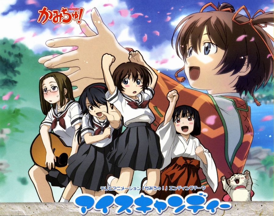 00s 4girls :d :o ;d ^_^ acoustic_guitar age_difference alternate_costume alternate_hairstyle arm_up arms_up black_hair blue_eyes blunt_bangs blush blush_stickers bow brown_eyes brown_hair cat cherry_blossoms child choker clenched_hand clenched_hands closed_eyes cloud day embarrassed everyone fangs flat_chest foreshortening glasses grey_eyes guitar hair_ribbon hairband hakama hakama_skirt hitotsubashi_tama hitotsubashi_yurie holding instrument japanese_clothes jumping kamichu! kimono lineup loafers long_hair looking_at_viewer looking_away miko multiple_girls nature necktie official_art one_eye_closed open_mouth outdoors outstretched_hand petals pink_eyes pleated_skirt profile pushing red_hakama ribbon saegusa_matsuri saegusa_miko school_uniform serafuku shijou_mitsue shoes short_hair short_twintails siblings sisters skirt sky smile socks surprised sweatdrop twintails upper_body water white_legwear wide_sleeves wink