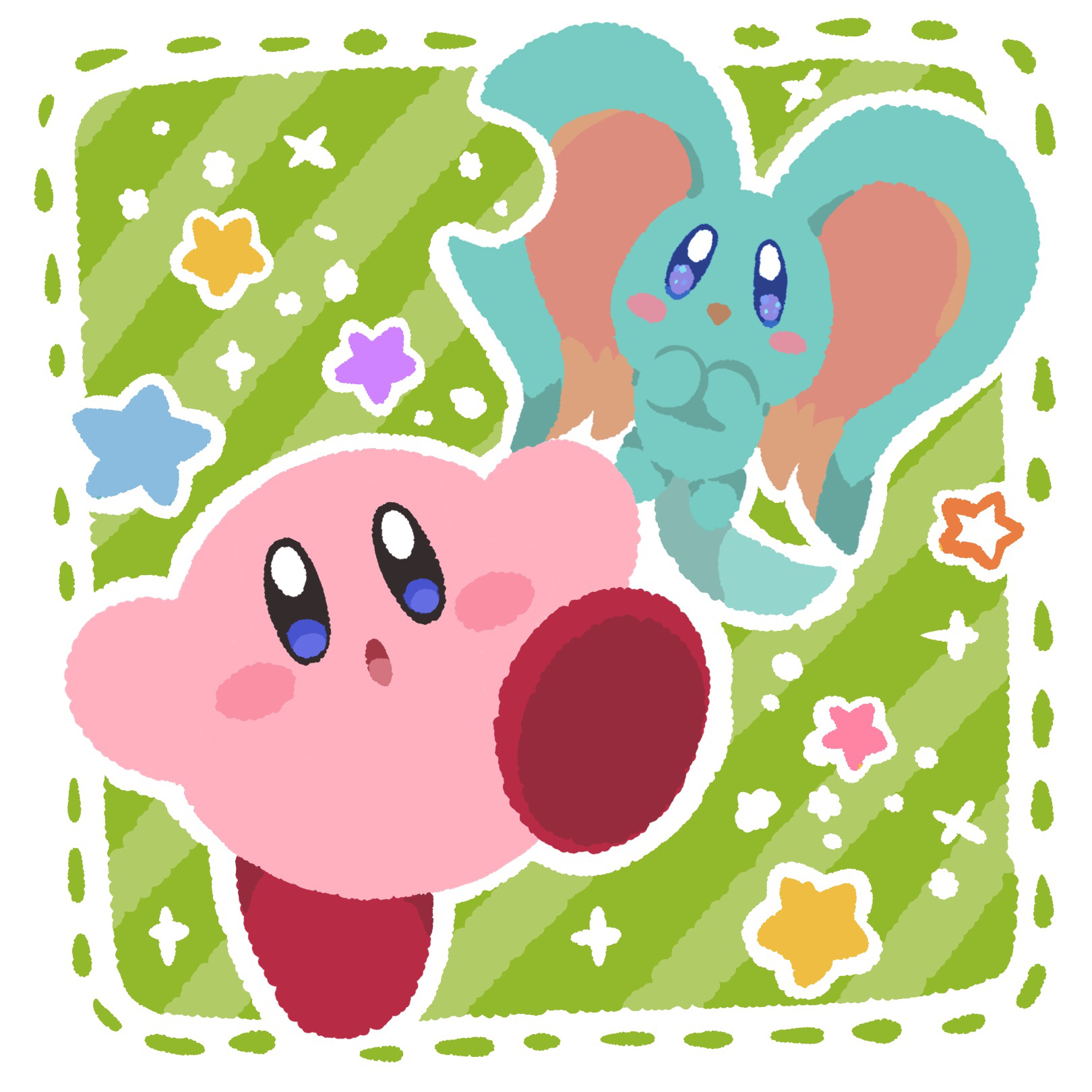 72kuri :o animal_ears blush_stickers colored_skin commentary_request elfilin highres kirby kirby_(series) kirby_and_the_forgotten_land mouse_ears nintendo no_humans notched_ear outline pink_skin solid_oval_eyes sparkle star_(symbol) tail white_outline
