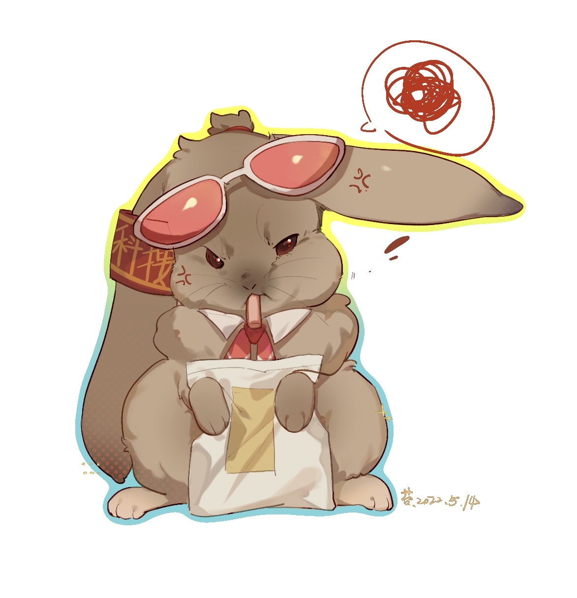 ace_attorney anger_vein animal animal_focus animalization bag brown_eyes brown_fur brown_rabbit chenmisongzhaodezhongershaonu detached_collar ema_skye gradient_outline highres neckerchief no_humans phoenix_wright:_ace_attorney_-_spirit_of_justice rabbit red-tinted_eyewear red_neckerchief simple_background spoken_squiggle squiggle tinted_eyewear white-framed_eyewear white_background