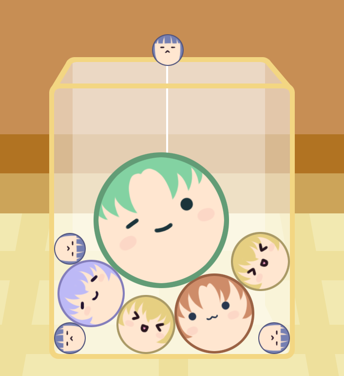 >_< ._. :< :d ;) blonde_hair blunt_bangs brown_background brown_hair circle closed_eyes closed_mouth commentary_request furude_rika gaou_(babel) green_hair hanyuu higurashi_no_naku_koro_ni houjou_satoko one_eye_closed open_mouth parted_bangs purple_hair ryuuguu_rena smile sonozaki_mion suika_game xd