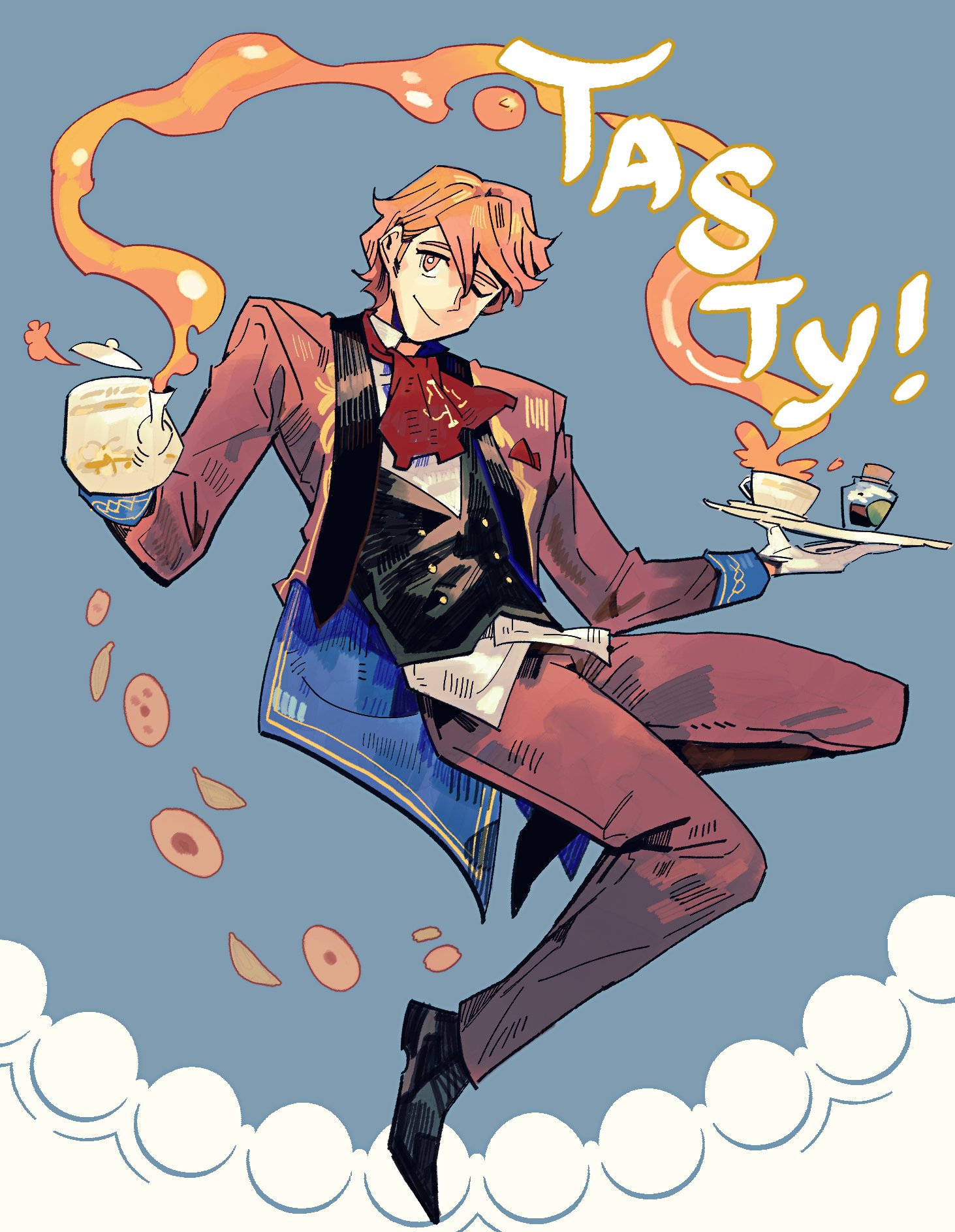 cup ferdinand_von_aegir ferdinand_von_aegir_(tea_party) fire_emblem fire_emblem:_three_houses fire_emblem_heroes highres holding holding_cup looking_at_viewer moogyoza nintendo official_alternate_costume one_eye_closed orange_eyes orange_hair smile teacup