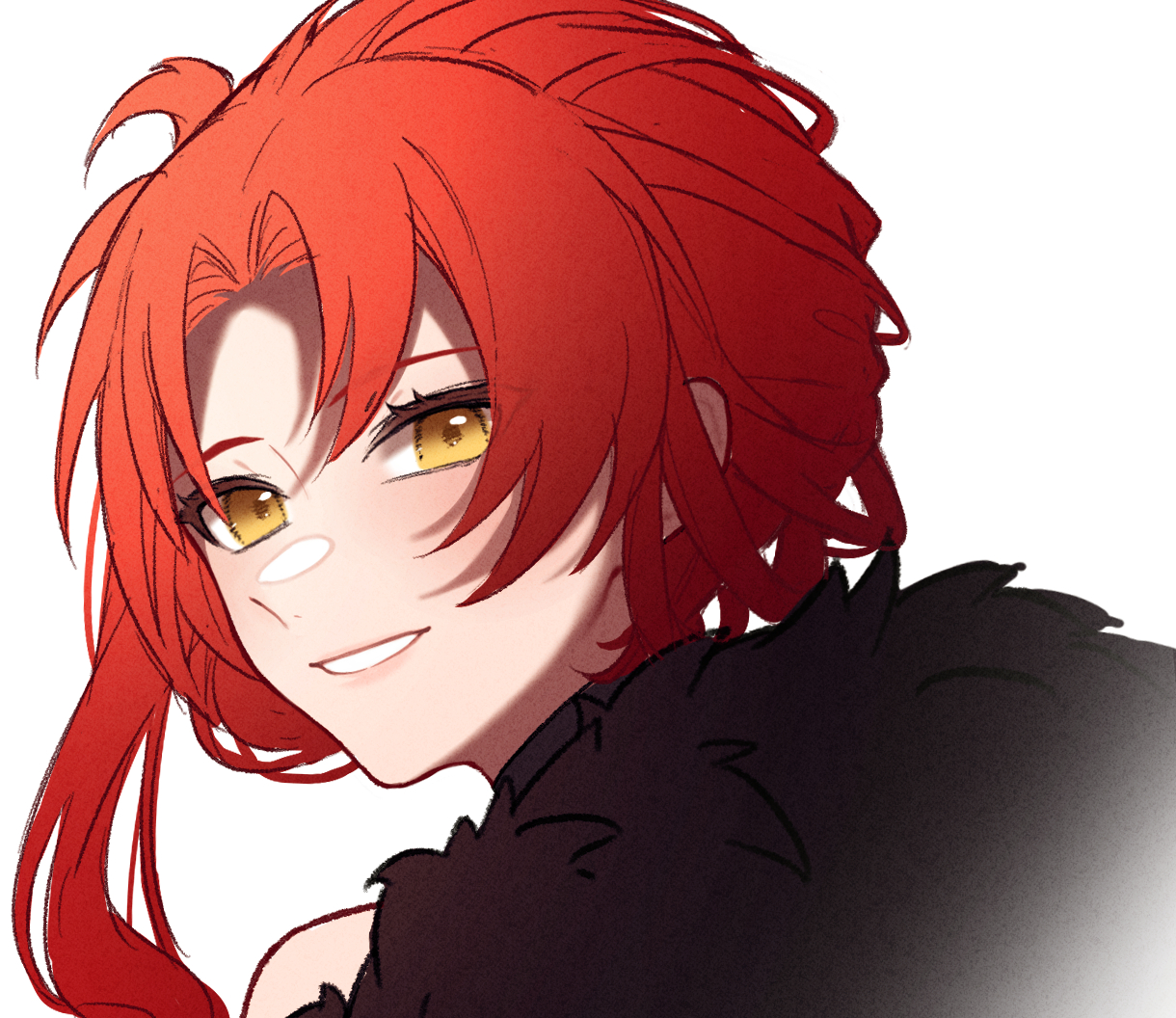 1girl bare_shoulders brown_eyes honkai_(series) honkai_impact_3rd long_hair looking_at_viewer murata_himeko murata_himeko_(vermillion_knight) parted_bangs portrait red_hair simple_background smile solo white_background yunomi_(yunomi_hs)