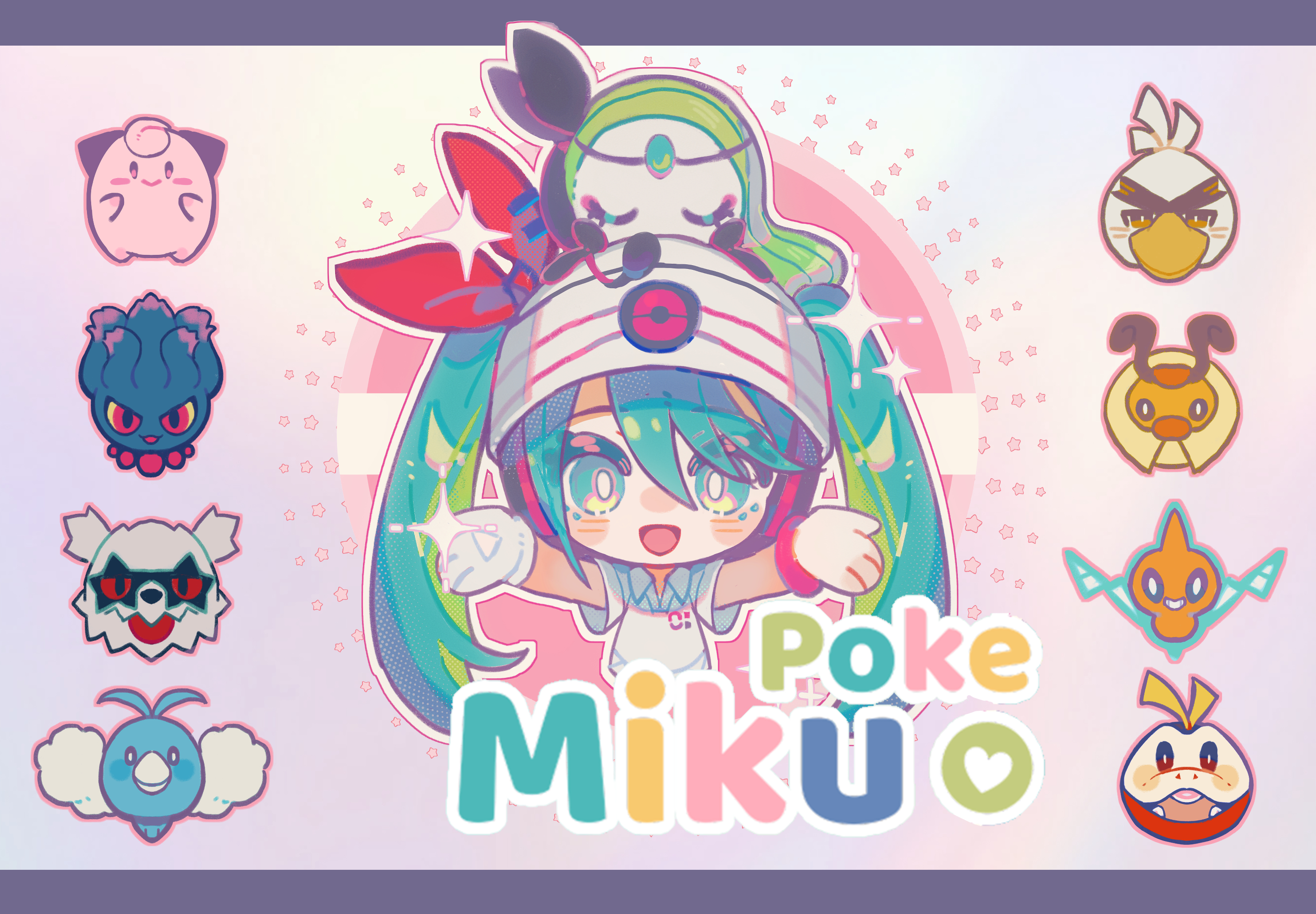 1girl aqua_eyes aqua_hair beanie blush blush_stickers border bracelet chibi circle circlet cleffa closed_eyes collared_shirt colored_eyelashes copyright_name creature_on_head crocalor eyelashes fuecoco galarian_form galarian_zigzagoon gem gen_1_pokemon gen_2_pokemon gen_3_pokemon gen_4_pokemon gen_5_pokemon gen_8_pokemon gloves green_gem grey_border hair_ribbon hat hatsune_miku highres jewelry jigglypuff kricketot legendary_pokemon long_hair looking_at_viewer meloetta misdreavus mythical_pokemon nintendo niukou_kouzi nose_blush open_mouth outline outstretched_arms pink_outline poke_ball_print pokemon pokemon_(creature) project_voltage psychic_miku_(project_voltage) red_ribbon ribbon rotom rotom_(normal) shirt short_sleeves single_glove sirfetch'd smile sparkle star_(symbol) swablu twintails upper_body vocaloid white_background white_gloves white_headwear white_shirt