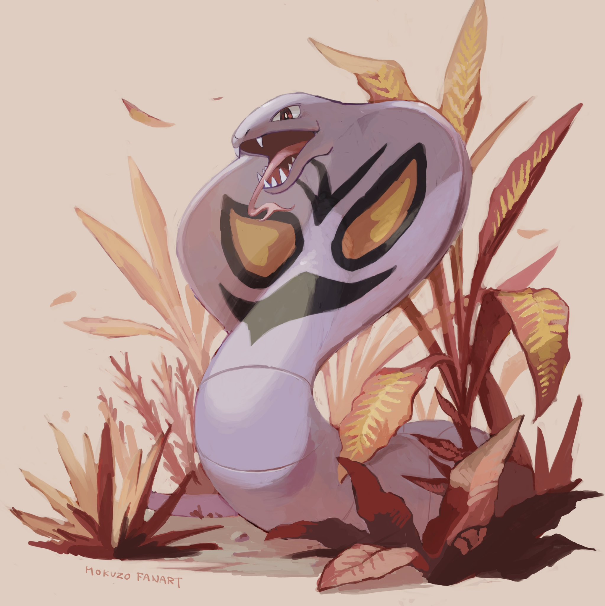 animal_focus arbok bright_pupils brown_eyes gen_1_pokemon highres mokuzou_(moku_ssbu) nintendo no_humans open_mouth pokemon pokemon_(creature) sharp_teeth signature snake solo teeth tongue tongue_out white_pupils