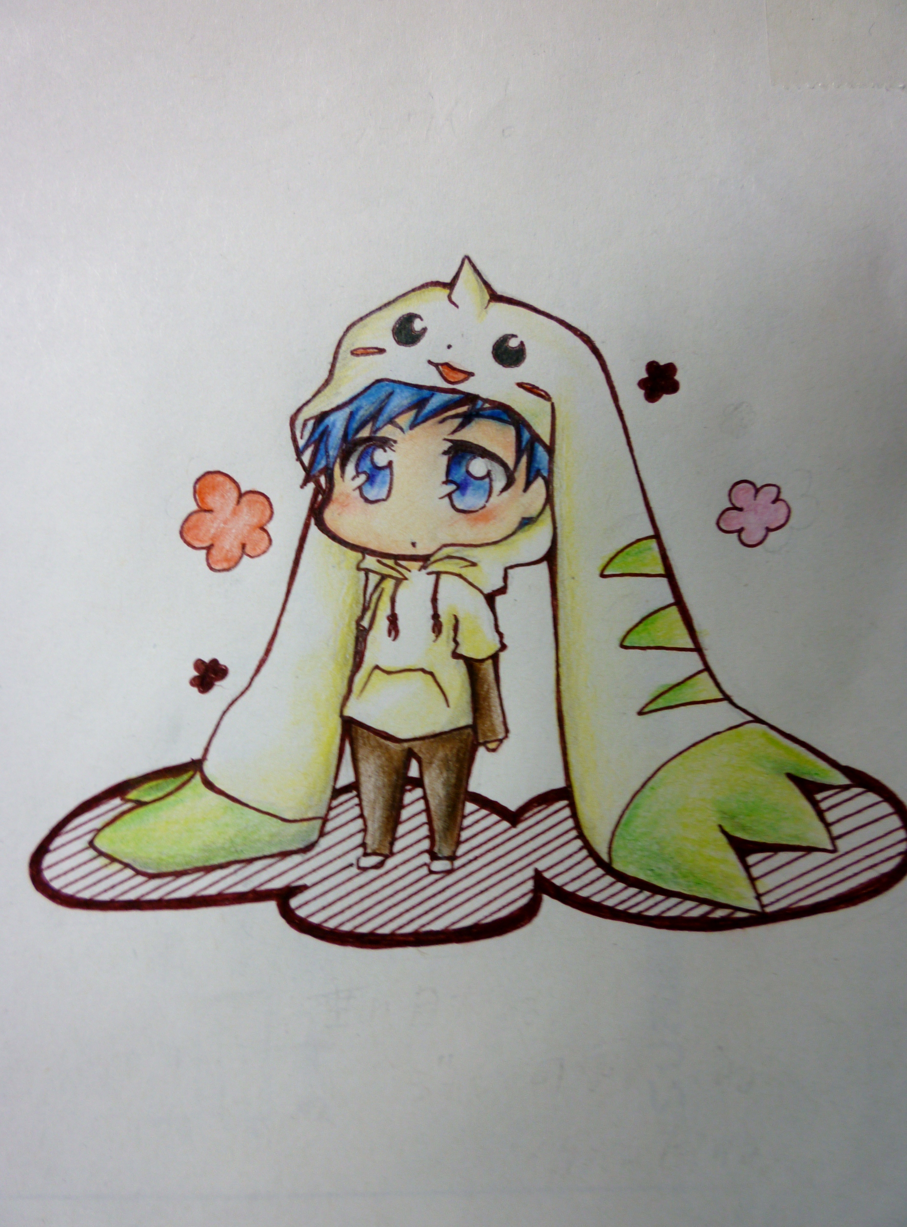 1boy absurdres blue_eyes blue_hair cosplay digimon highres hood horns lee_jianliang male_focus solo terriermon terriermon_(cosplay)