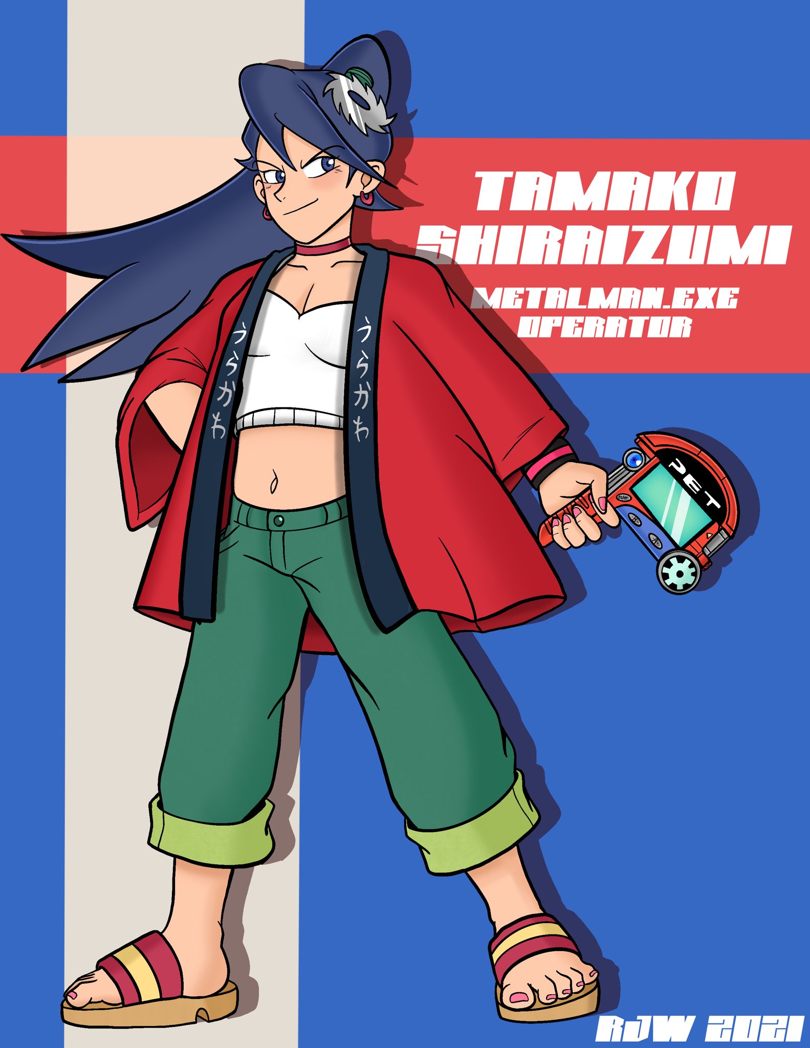 1girl breasts cleavage hair_ornament highres medium_breasts mega_man_(series) mega_man_battle_network ponytail purple_hair ranenwise shiraizumi_tamako tank_top