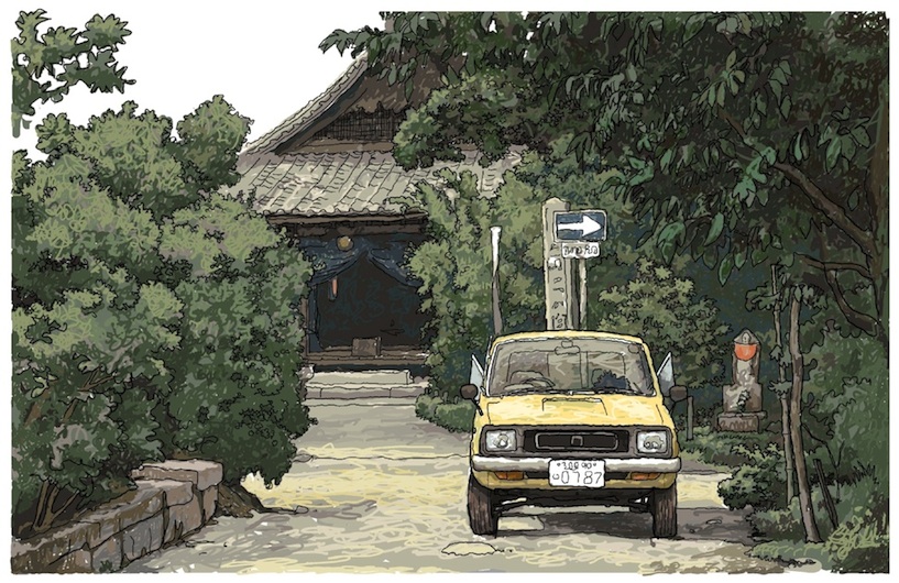architecture car east_asian_architecture mitsubishi mitsubishi_electric mitsubishi_fusou mitsubishi_heavy_industries mitsubishi_motors motor_vehicle nagoya_(city) original road road_sign sign vehicle_focus yaruz yellow_car