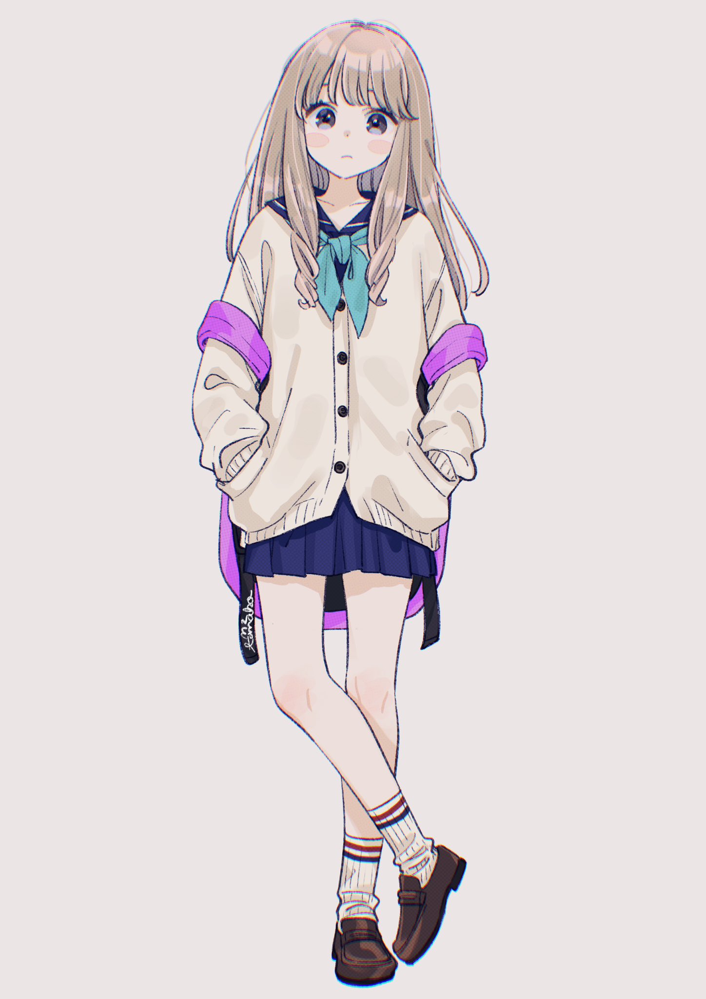 1girl black_eyes full_body hand_in_pocket highres mizutamako original school_uniform solo standing