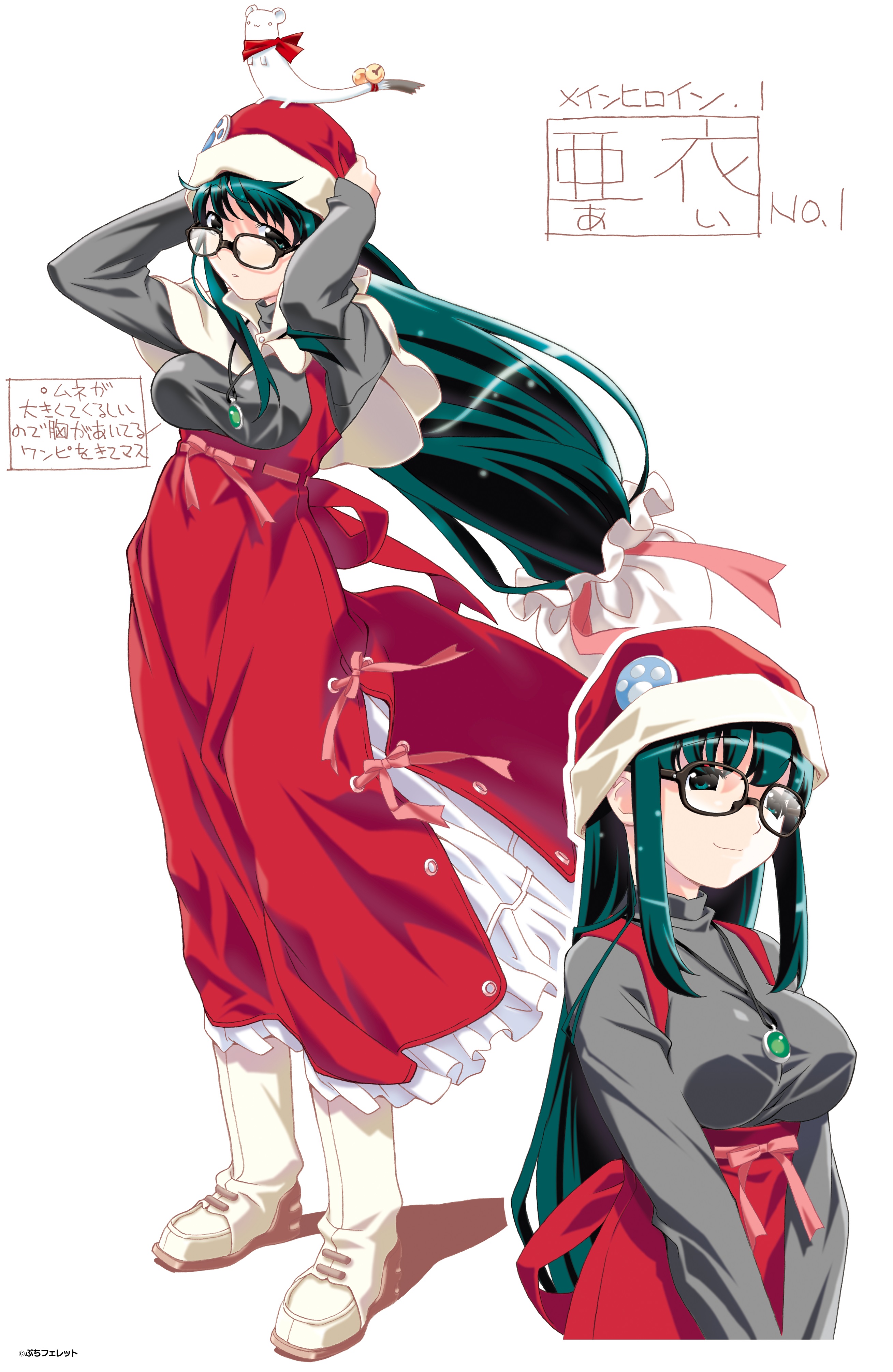 absurdres ai_(popotan) breasts dress glasses green_eyes green_hair highres medium_breasts popotan red_dress unagi_(popotan) watanabe_akio