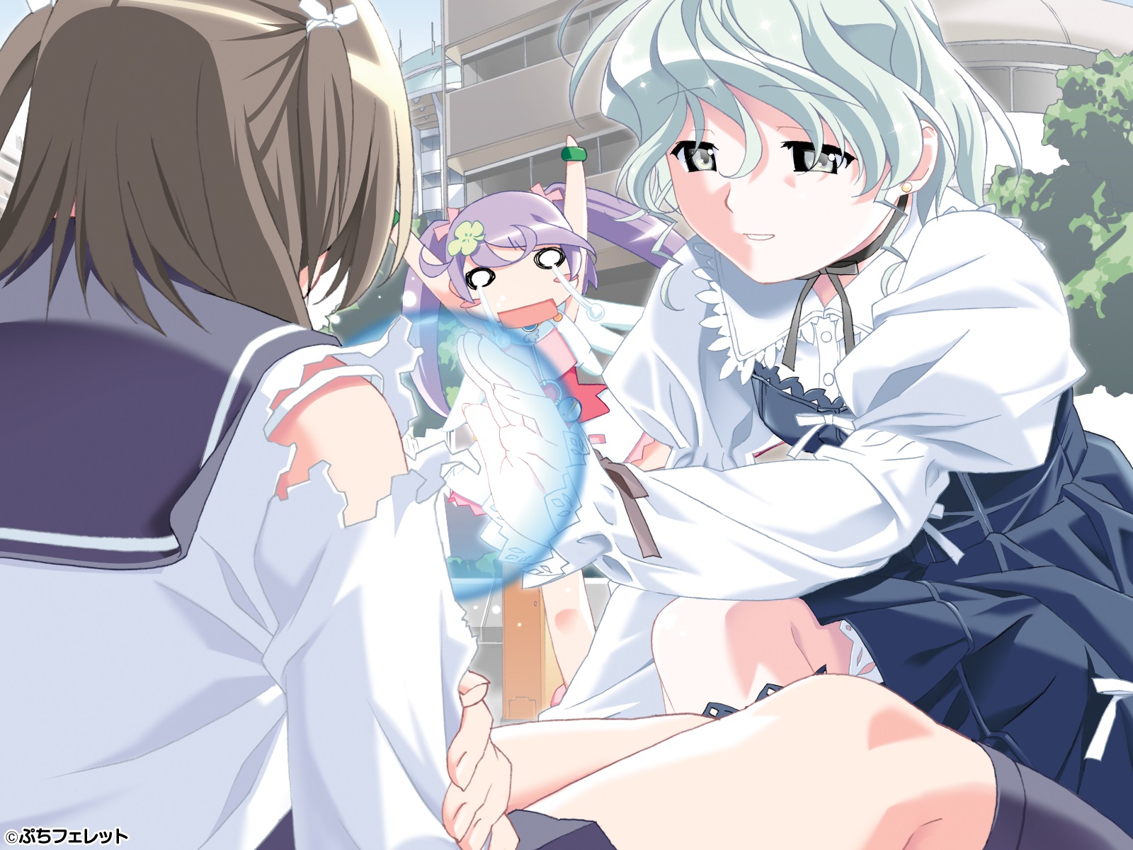 black_dress blush_stickers clover crying dress healing highres magical_girl mii_(popotan) popotan purple_hair shizuku_(popotan) watanabe_akio white_eyes white_hair wings