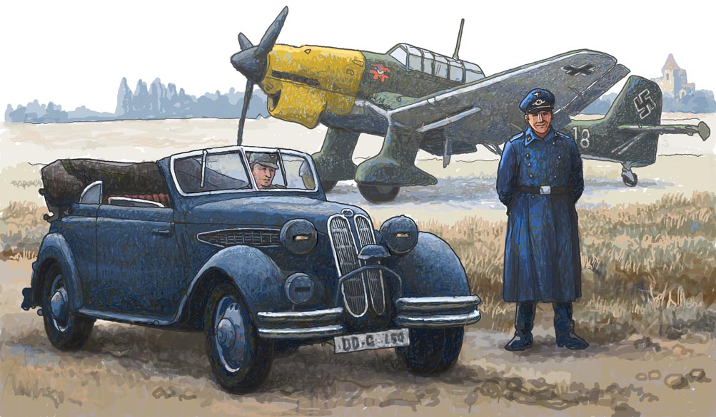 2boys aircraft airplane balkenkreuz bmw bomber car commentary_request cross fighter_jet german_army hat ju_87 military military_hat military_uniform military_vehicle motor_vehicle multiple_boys nazi original propeller_fighter smile swastika vehicle_focus world_war_ii yaruz