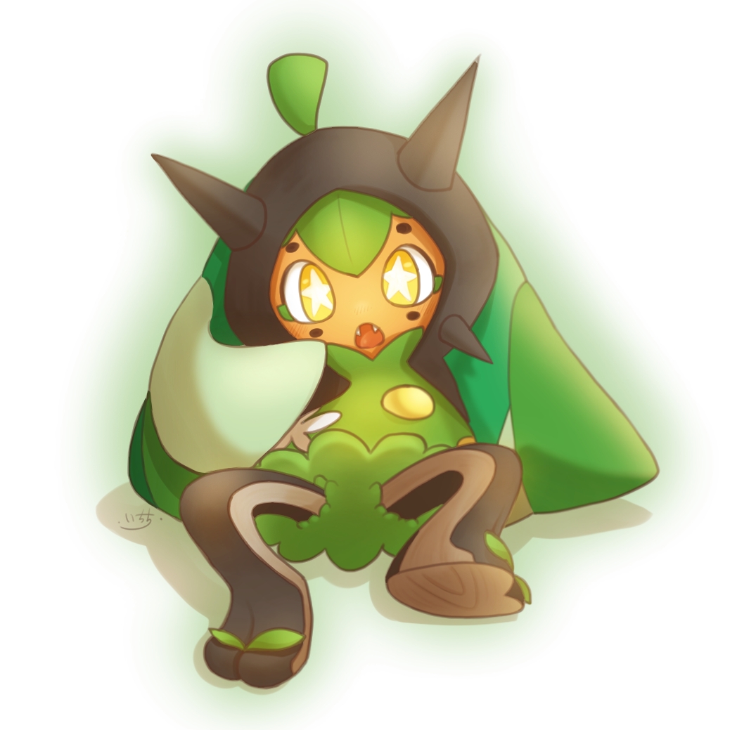 :o blush commentary_request fangs full_body horns ichichi_15 looking_at_viewer nintendo ogerpon open_mouth pokemon pokemon_(creature) reclining solo star-shaped_pupils star_(symbol) symbol-shaped_pupils tongue yellow_eyes