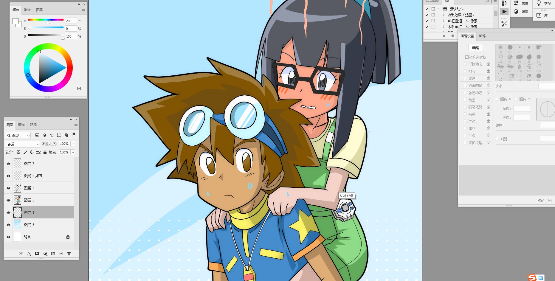 1boy 1girl blush curry_lun digimon embarrassed goggles goggles_on_head highres mochizuki_meiko yagami_taichi