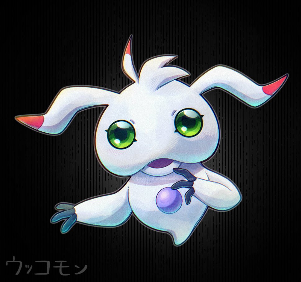 black_eyes colored_sclera digicore digimon digimon_(creature) floating green_sclera ukkomon