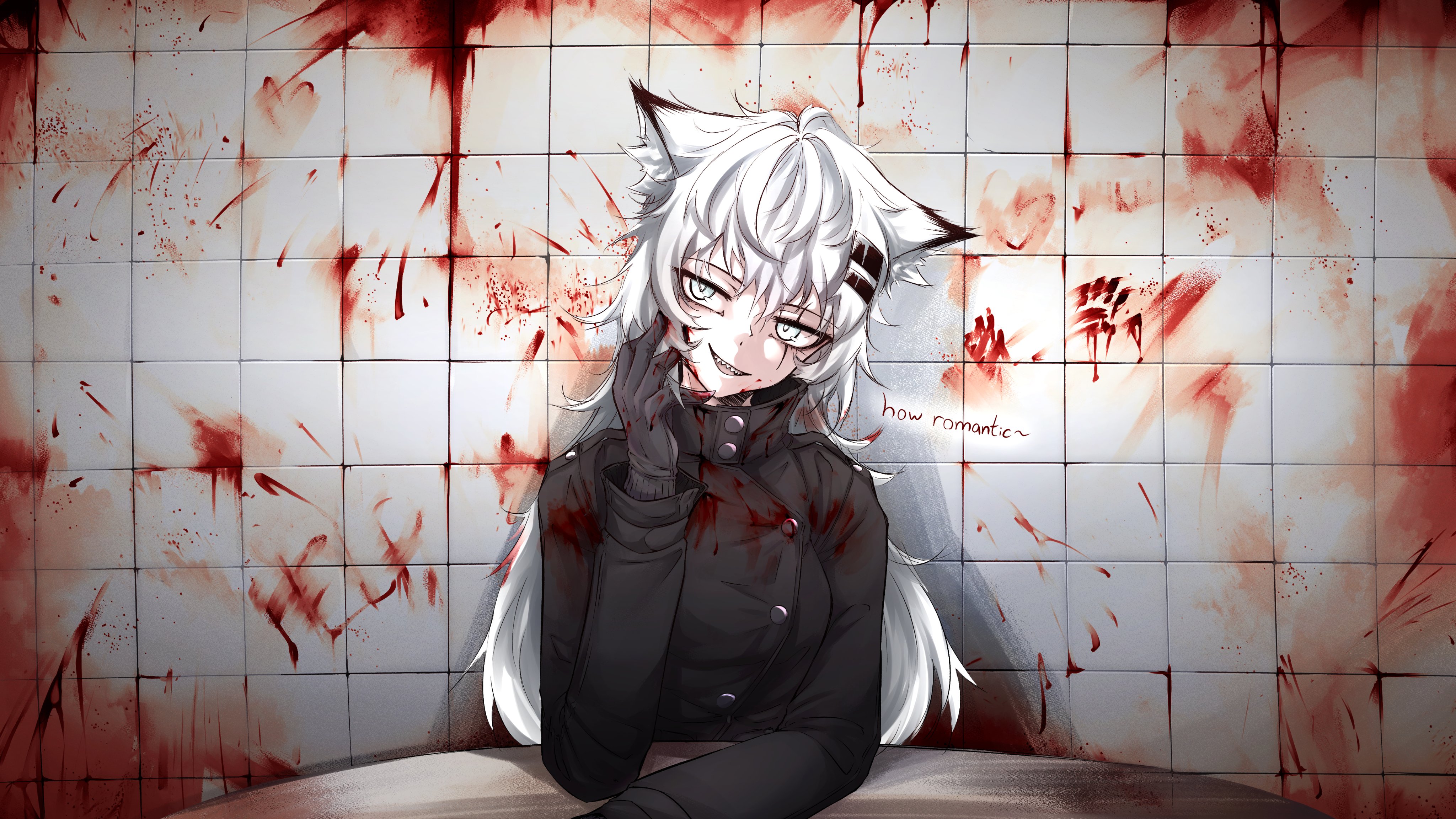 &{ID:9229280 CreatedAt:Sun Nov 12 21:30:07 -0600 2023 Score:9 Width:4096 Height:2304 MD5:638458e02145adb439de8105e426096d Directory:63/84 Image:638458e02145adb439de8105e426096d.jpg Rating:general Source:https://twitter.com/MazzleRazz/status/1723573221797011768 Change:1717011562 Owner:danbooru CreatorID:6498 ParentID:0 Sample:1 PreviewHeight:196 PreviewWidth:350 Tags:1girl absurdres animal_ear_fluff animal_ears arknights arm_rest black_gloves black_jacket blood blood_on_clothes blood_on_face blood_on_hands blood_splatter breasts buttons collared_jacket commentary crazy_smile english_commentary gloves grey_eyes grey_hair hair_between_eyes hair_ornament hairclip hand_on_own_cheek hand_on_own_face hand_up head_tilt high_collar highres indoors jacket lappland_(arknights) long_hair long_sleeves looking_at_viewer medium_breasts messy_hair open_mouth pale_skin scar scar_across_eye scar_on_face sharp_teeth sitting smile solo speech_bubble table teeth tile_wall tiles tofusquisha tongue upper_body upper_teeth_only wall white_background wolf_ears wolf_girl Title: HasNotes:false HasComments:false FileURL:https://img2.gelbooru.com/images/63/84/638458e02145adb439de8105e426096d.jpg PreviewURL:https://gelbooru.com/thumbnails/63/84/thumbnail_638458e02145adb439de8105e426096d.jpg SampleURL:https://img2.gelbooru.com/samples/63/84/sample_638458e02145adb439de8105e426096d.jpg SampleHeight:478 SampleWidth:850 Status:active PostLocked:0 HasChildren:false IsVideo:false DisplayDate:12.11.2023 21:30}