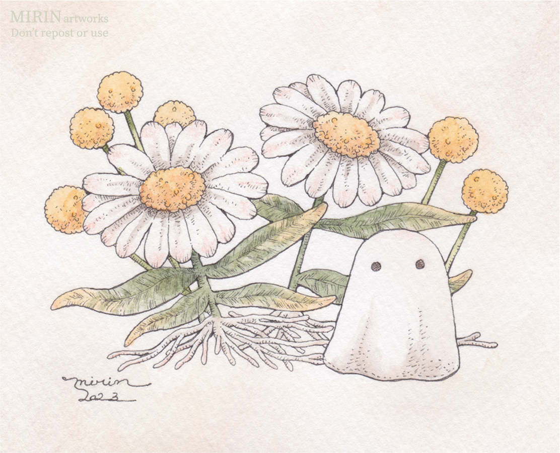 artist_name daisy_(flower) flower ghost mirin_(mirin_4) no_humans original painting_(medium) traditional_media watercolor_(medium) white_flower